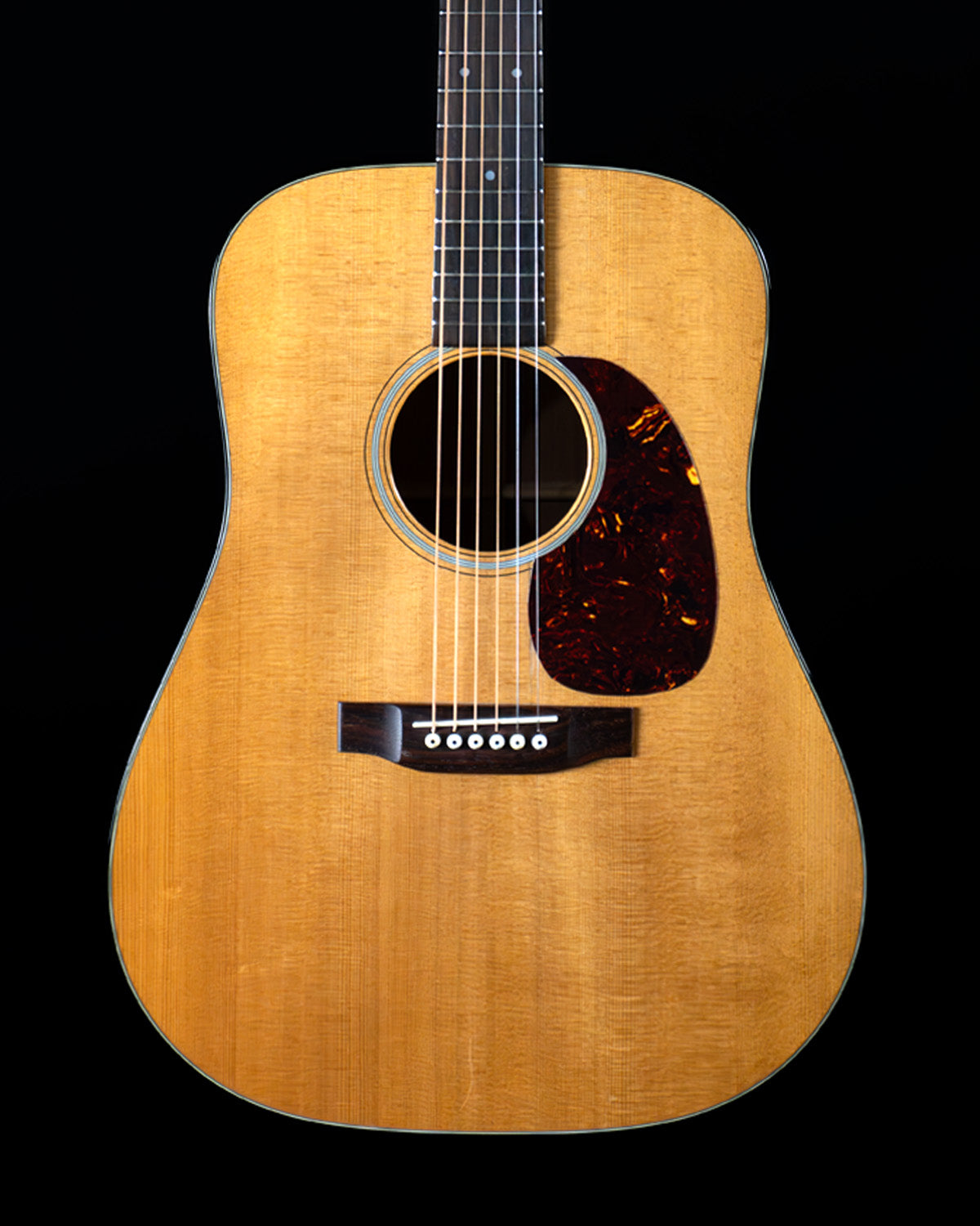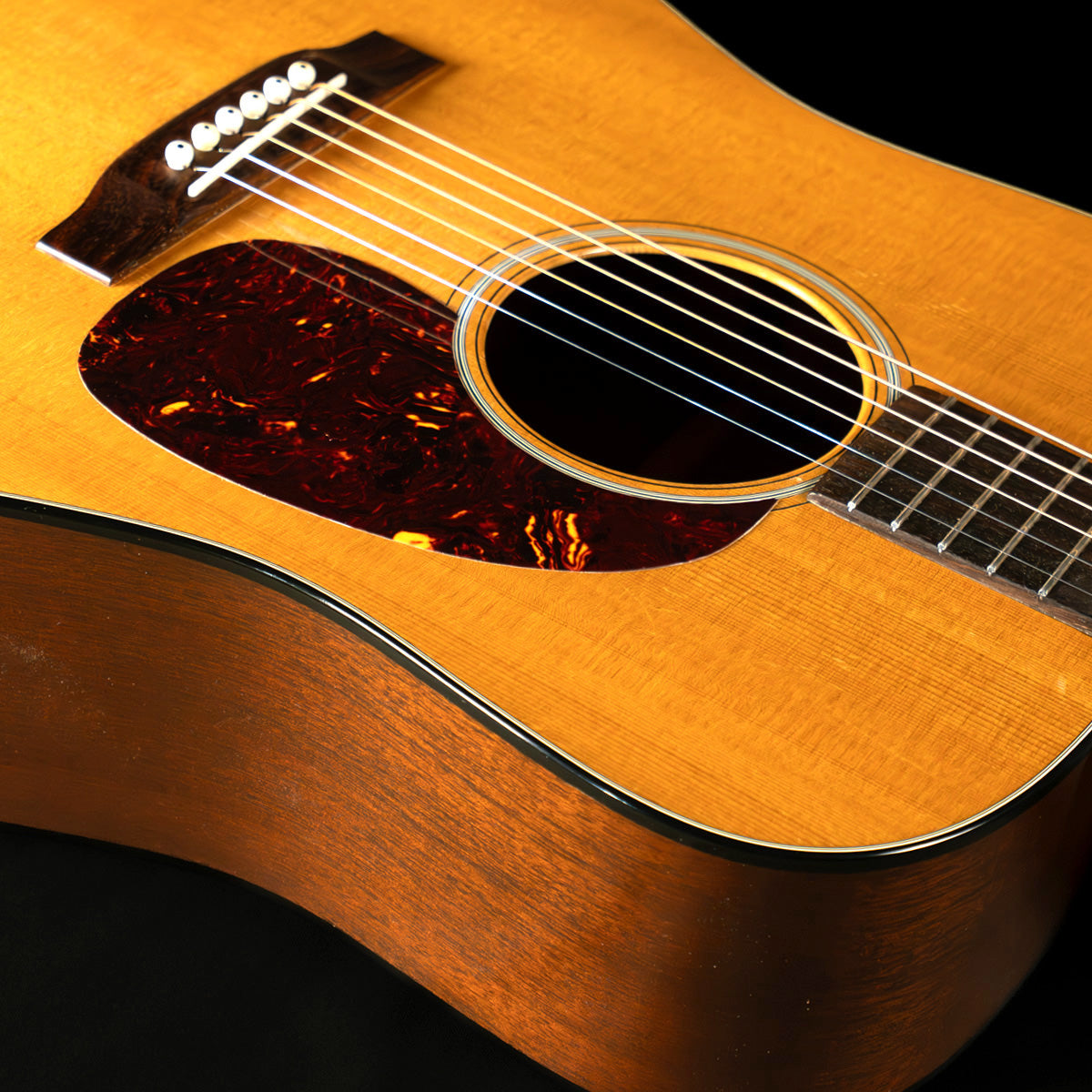 Condition is very good, guitar has had a professional neck set and new frets. There is a stabilized hairline crack on the bass side of the lower bout, and a stabilized crack between the pick guard and the sound hole (common on Martins where the finish was sprayed over the pick guard). A few dings and pick marks on the top. Guitar weighs in at 4lbs, 4oz.