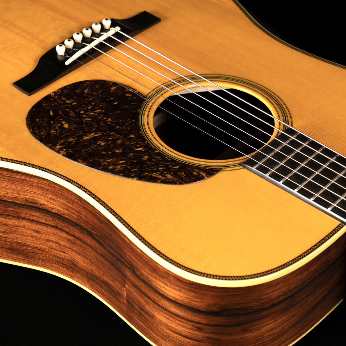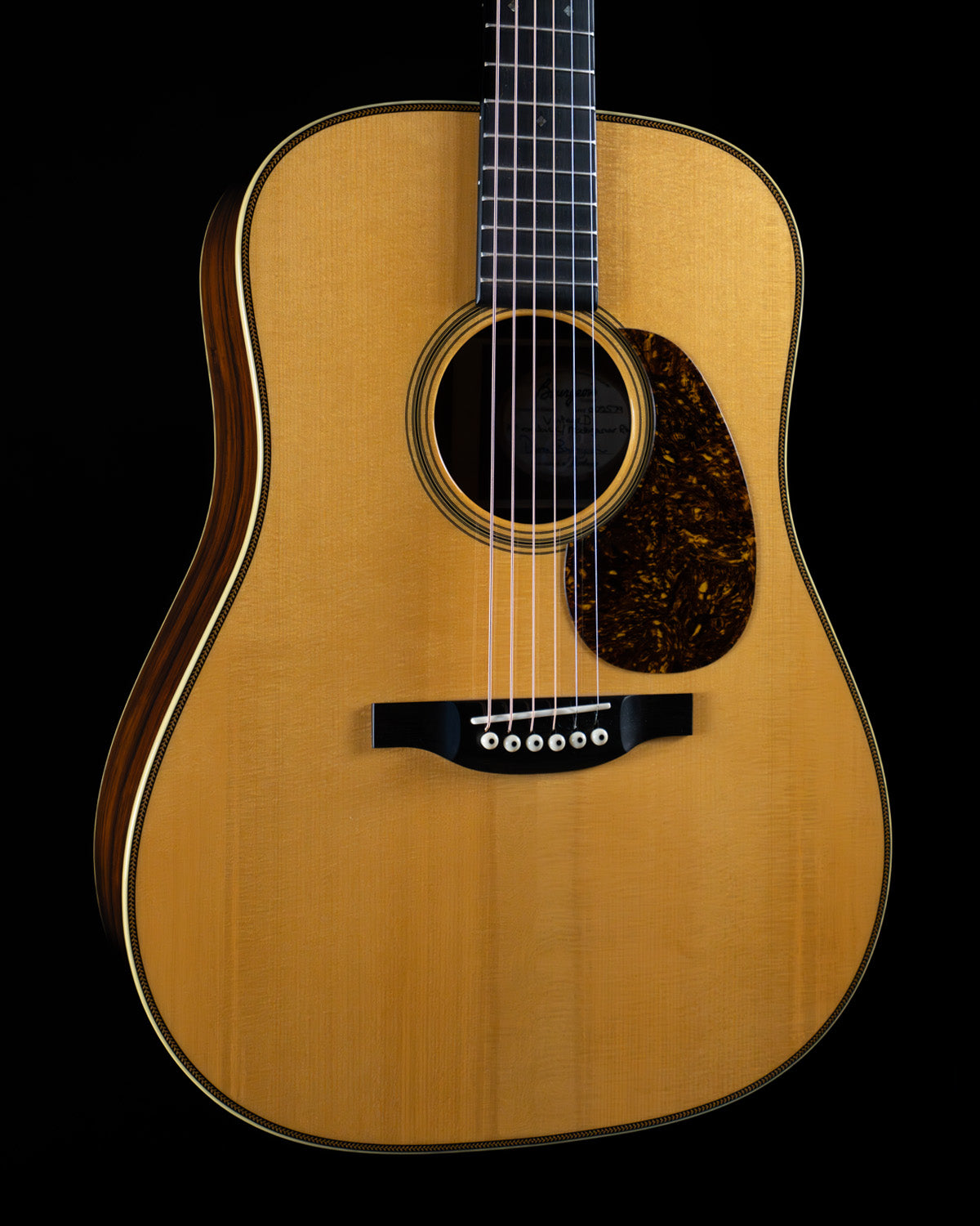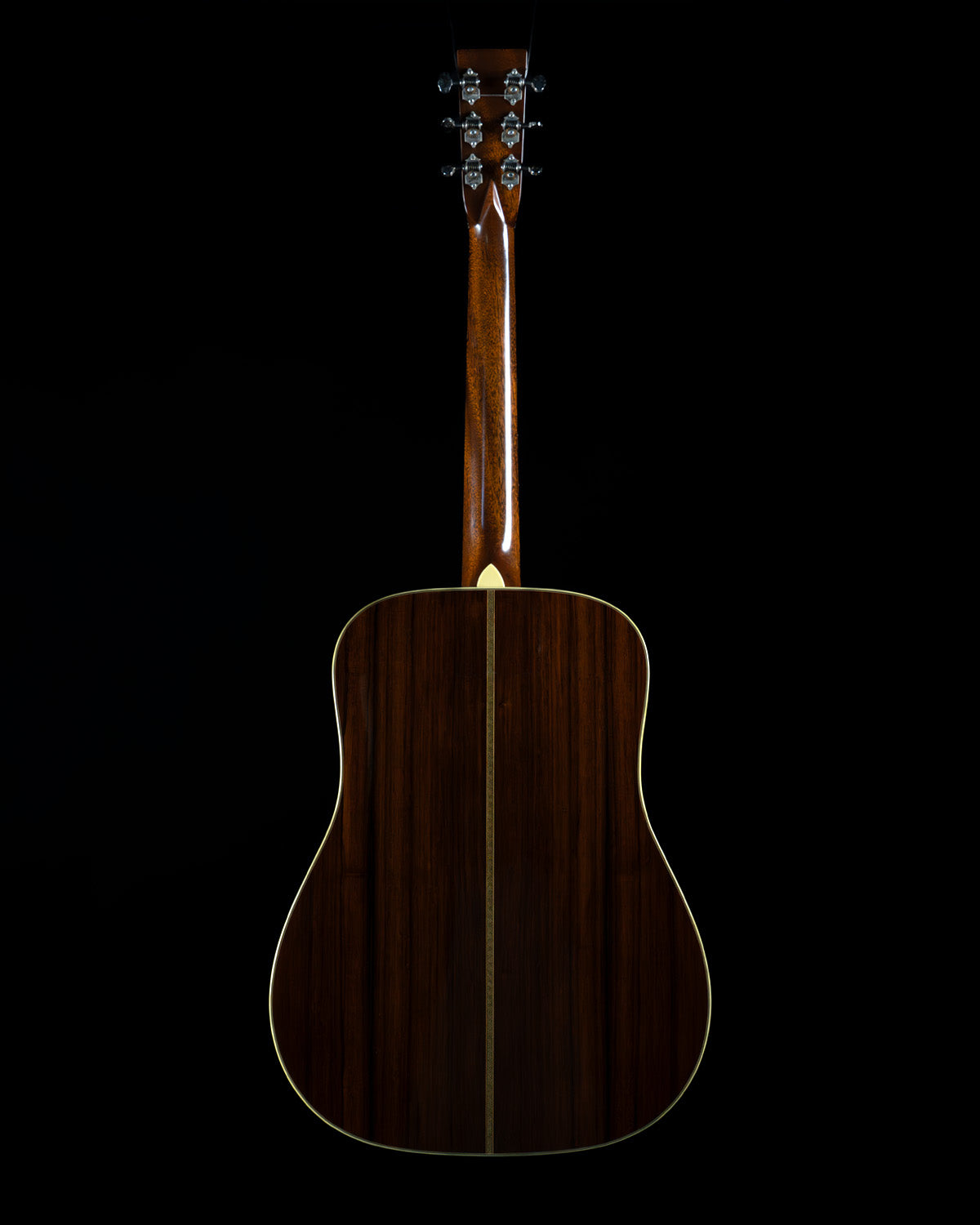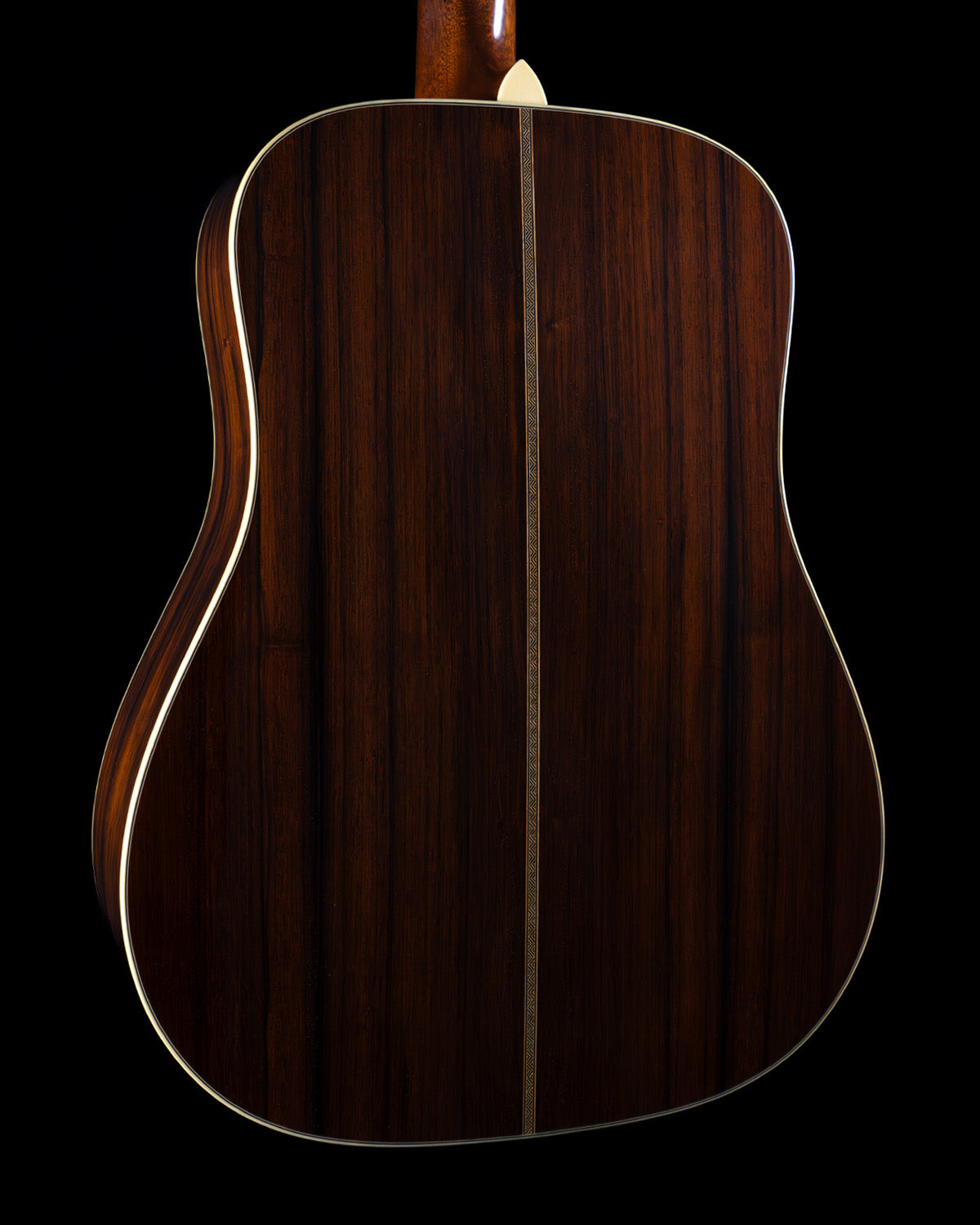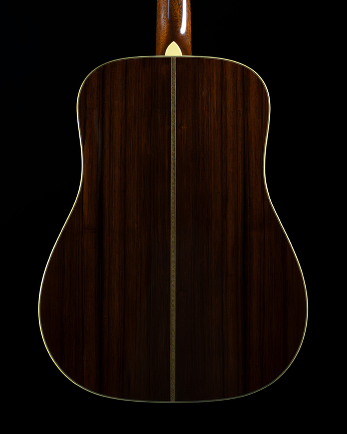 The appointments are pretty classic for a rosewood dread: herringbone top trim, 3-ring rosette, ivoroid body binding, tortoise-style pick guard and zipper back strip. The neck has a diamond volute and the tuners are nickel Waverly. Instrument weighs in at 4lbs, 14oz. Includes original hard case.