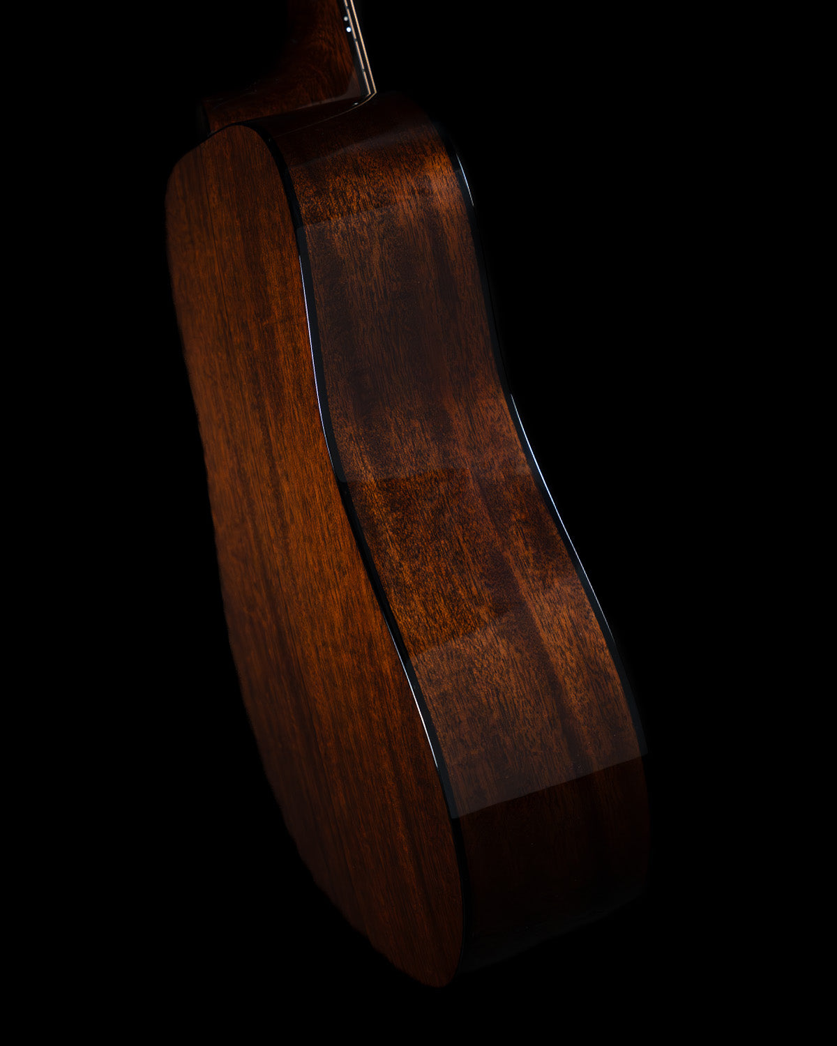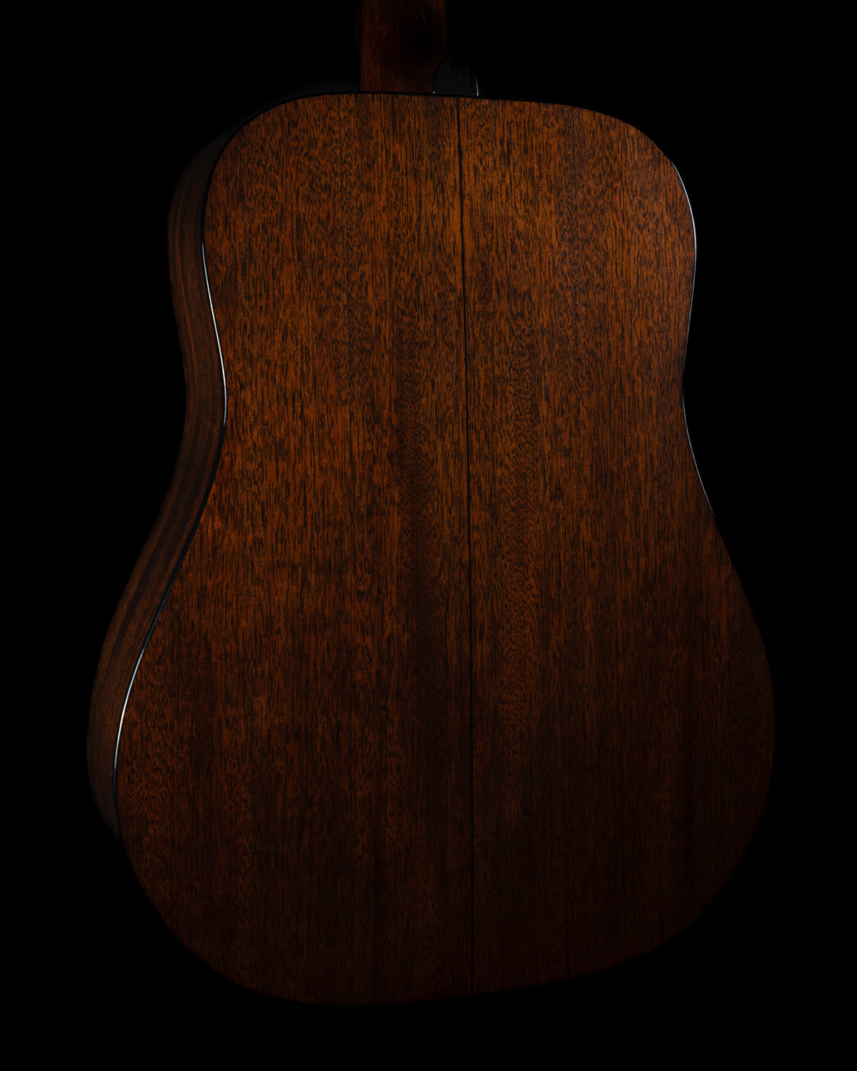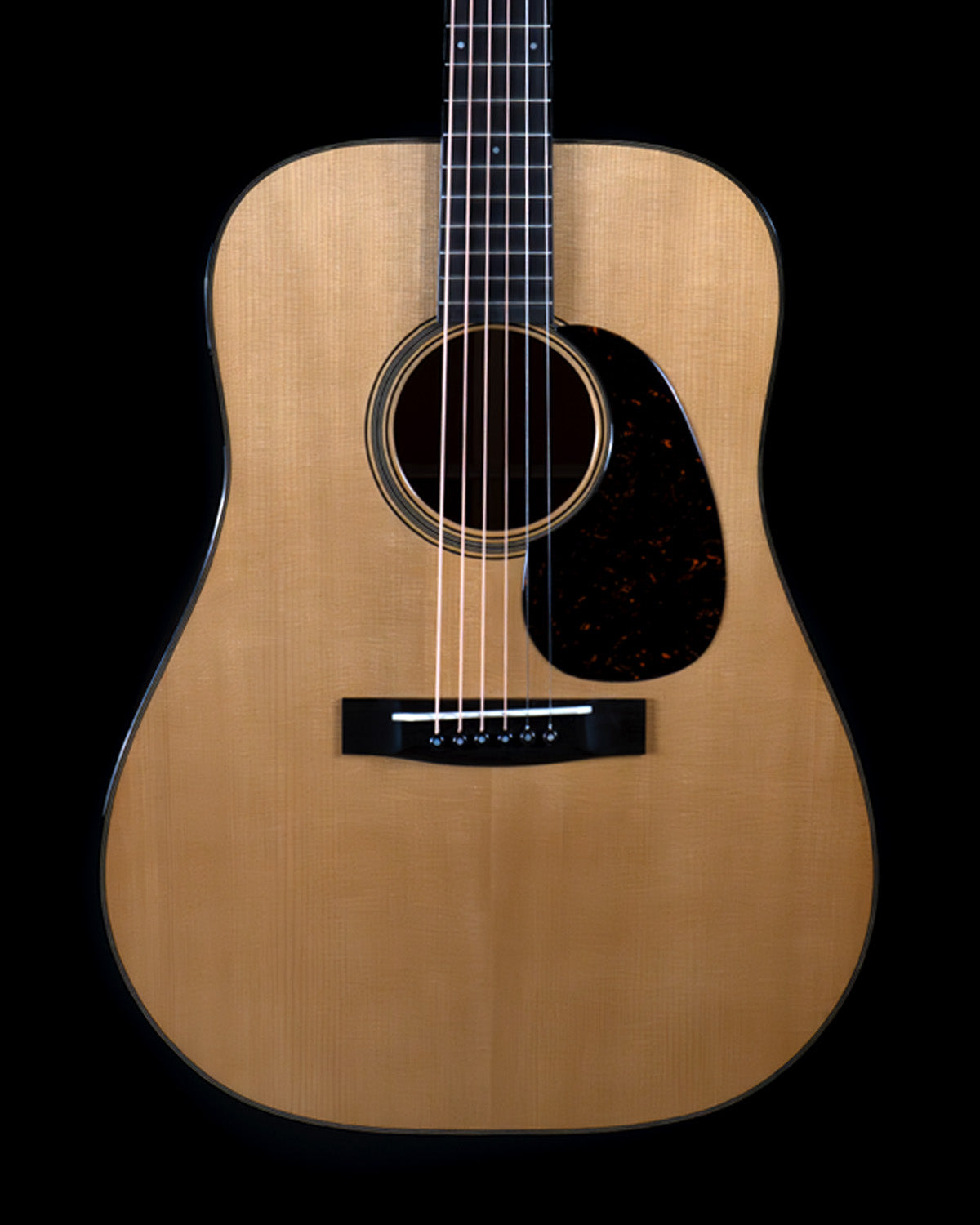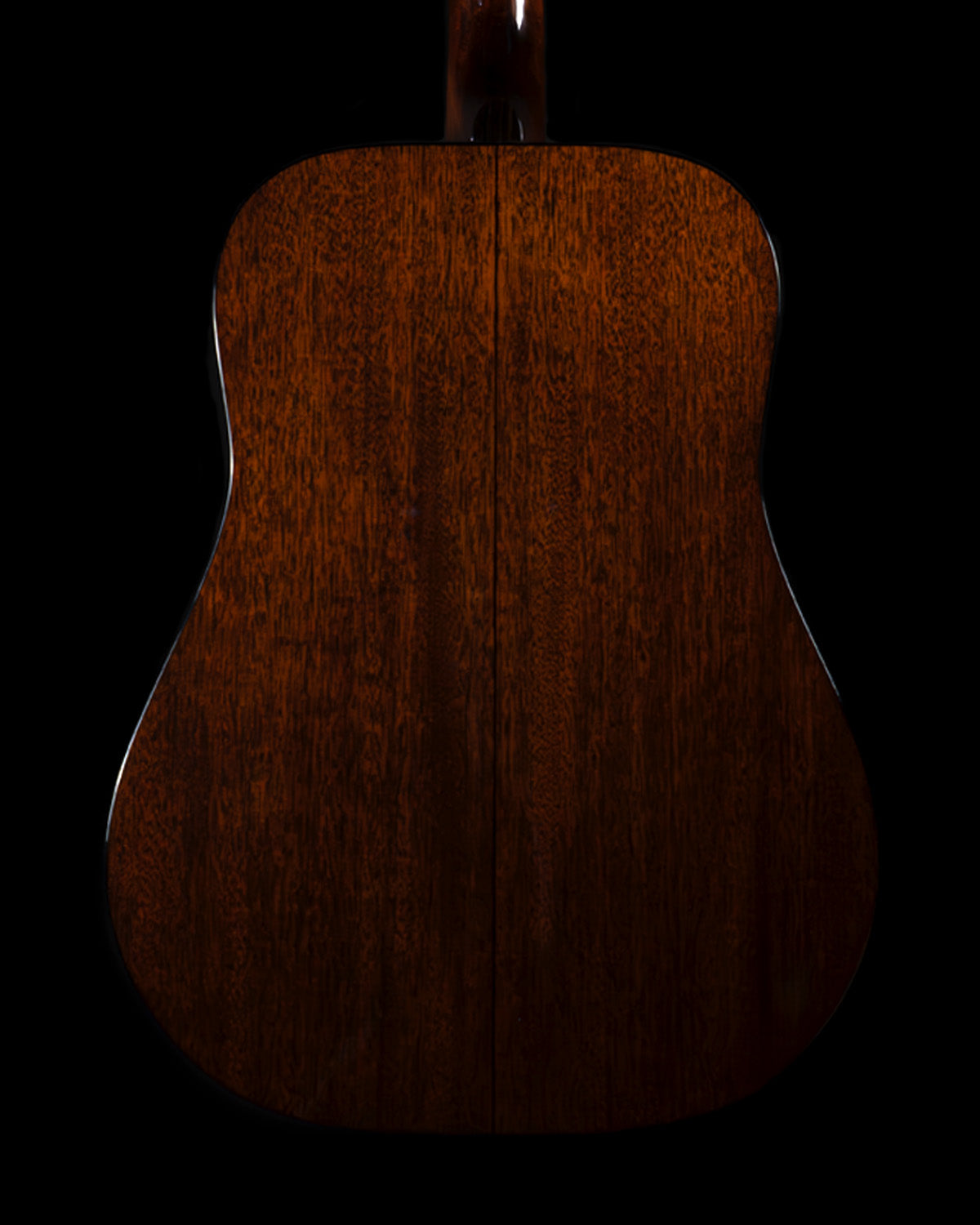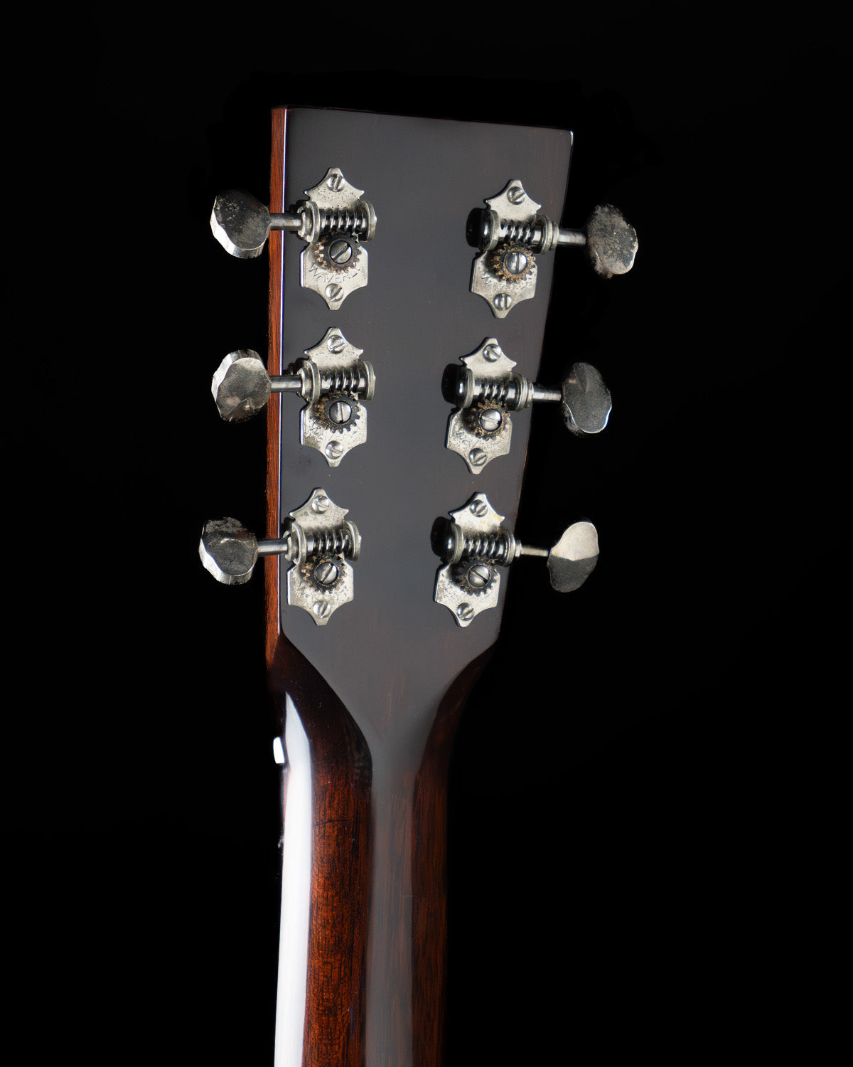 Adirondack spruce top and braces, mahogany back, sides and neck. Long scale with 1 3/4" nut, 2 1/4" string spacing at the saddle, and a modified V neck that measures .875" thick at the first fret and .971" at the ninth. Appointments are "18 Style" all the way, tortoise binding, 3-ring rosette, b/w/b top purfling, dot inlays.