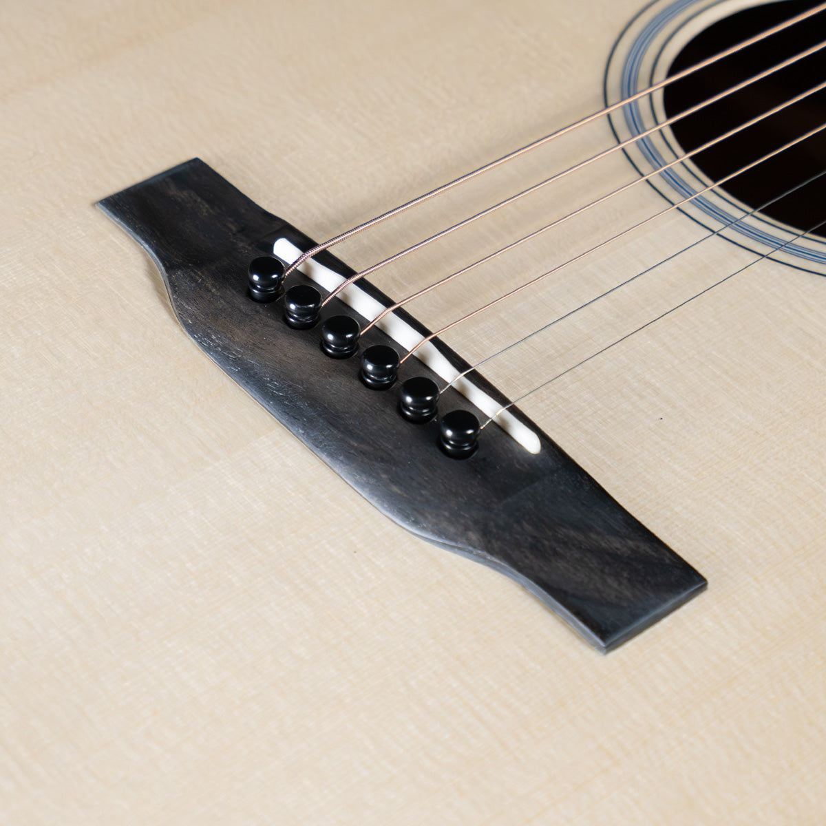 Elegant and clean presentation with b/w/b accents in the rosette and top purfling. Ebony fingerboard with dot inlays, ebony belly bridge. Slotted peghead with Golden Age tuners, ivoroid buttons. Includes original hard case and Custom Shop booklet.