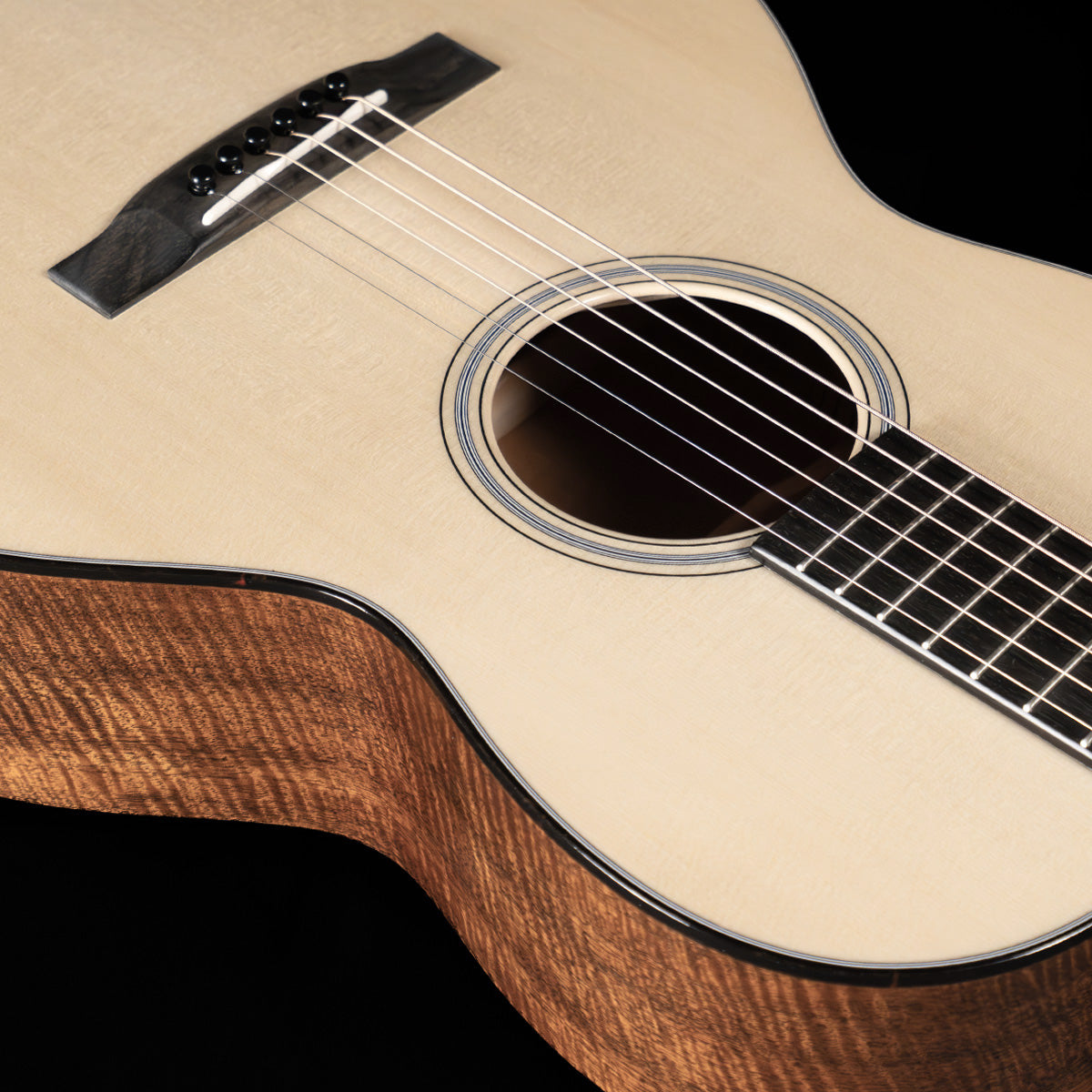 (USED) Very charming, lively and lightweight 2025 Custom Shop Martin 00 12-fretter. This one has a perfect Engelmann spruce top and some very distinctive flamed/figured mahogany on the back and sides. It's something of a floater at 3lbs, 7oz.