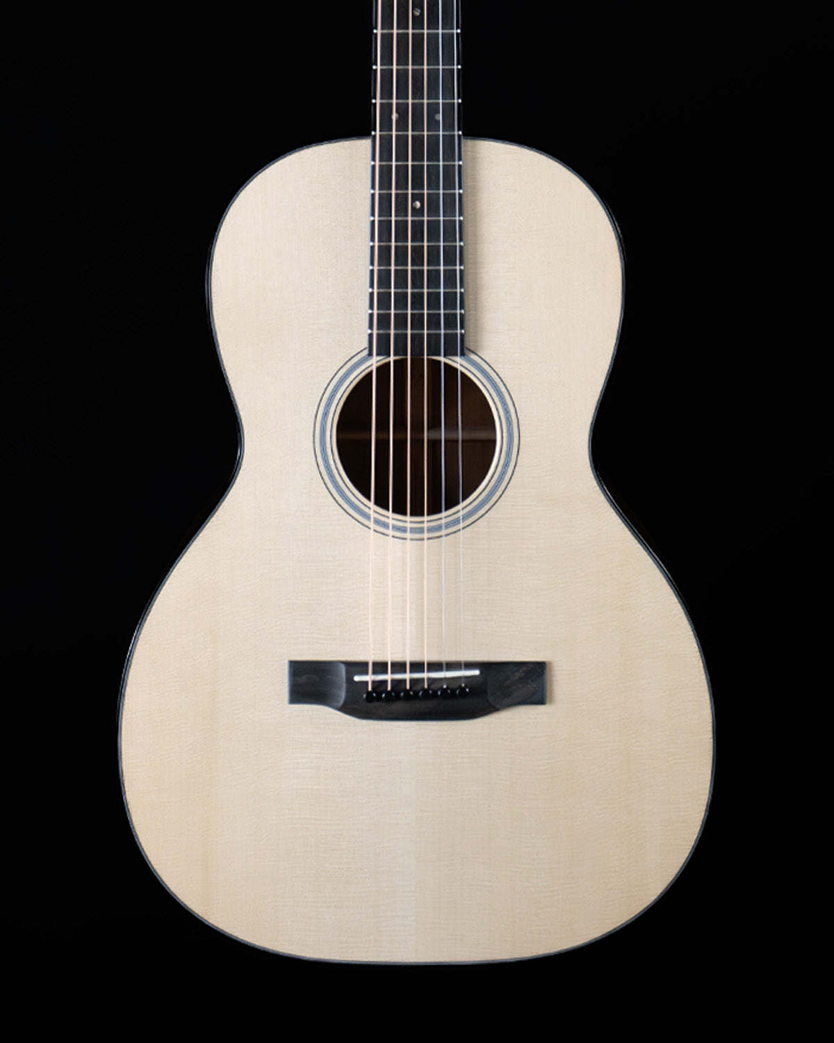 Short 24.9" scale length, 1 3/4" nut and 2 1/8" string spacing at the saddle. The neck profile is the Golden Era modified low oval, measuring .838" at the first fret and .934" at the ninth.