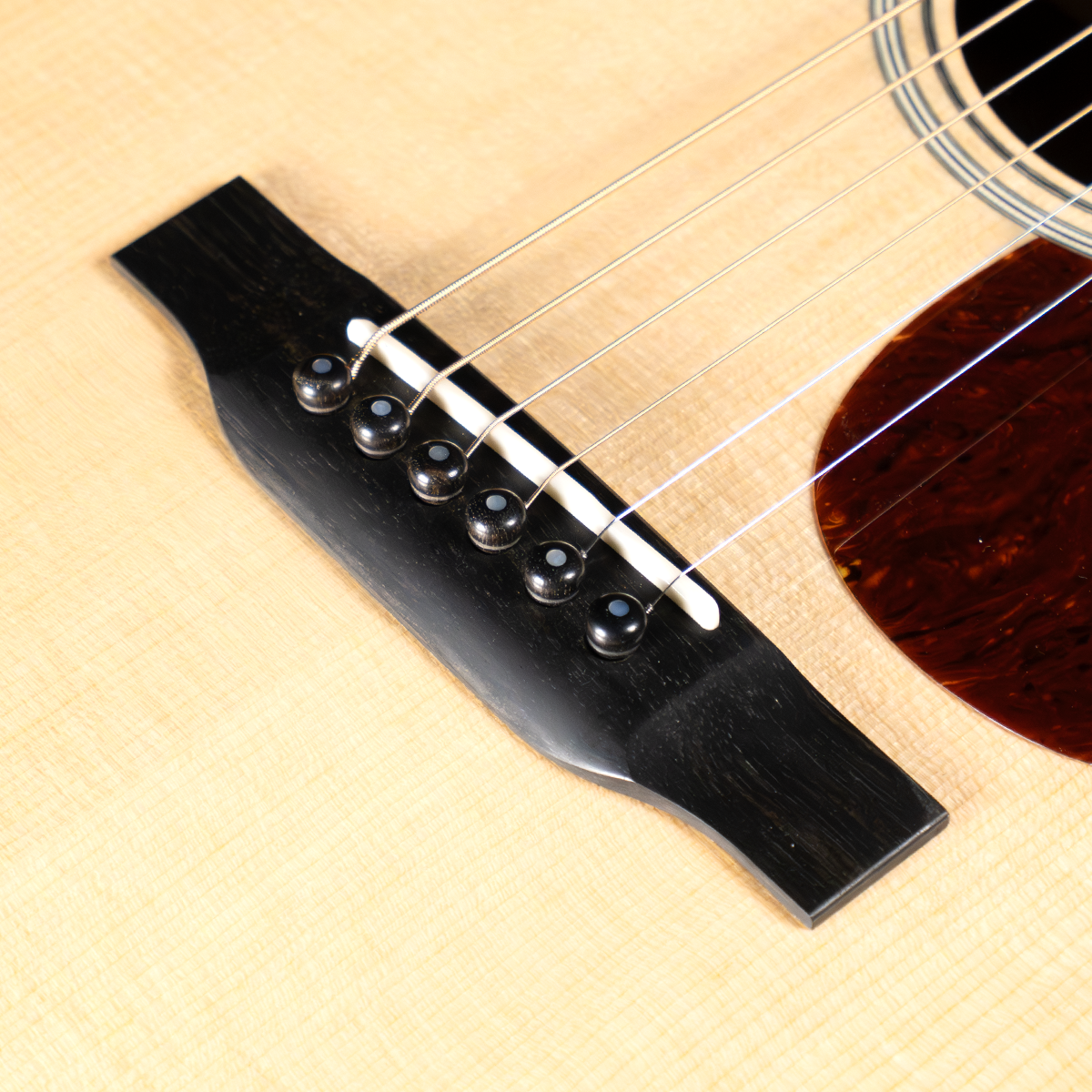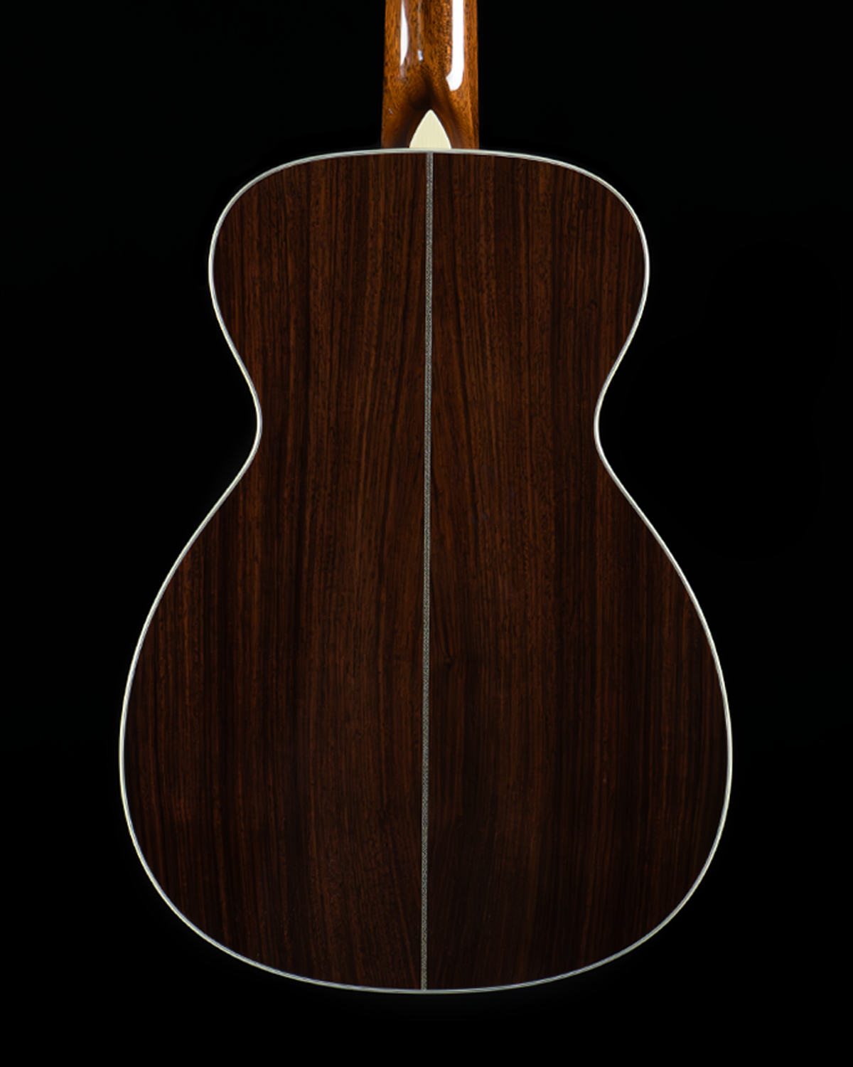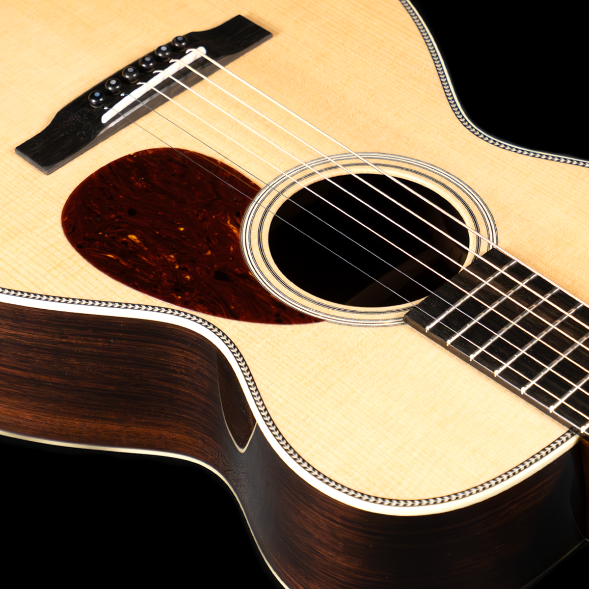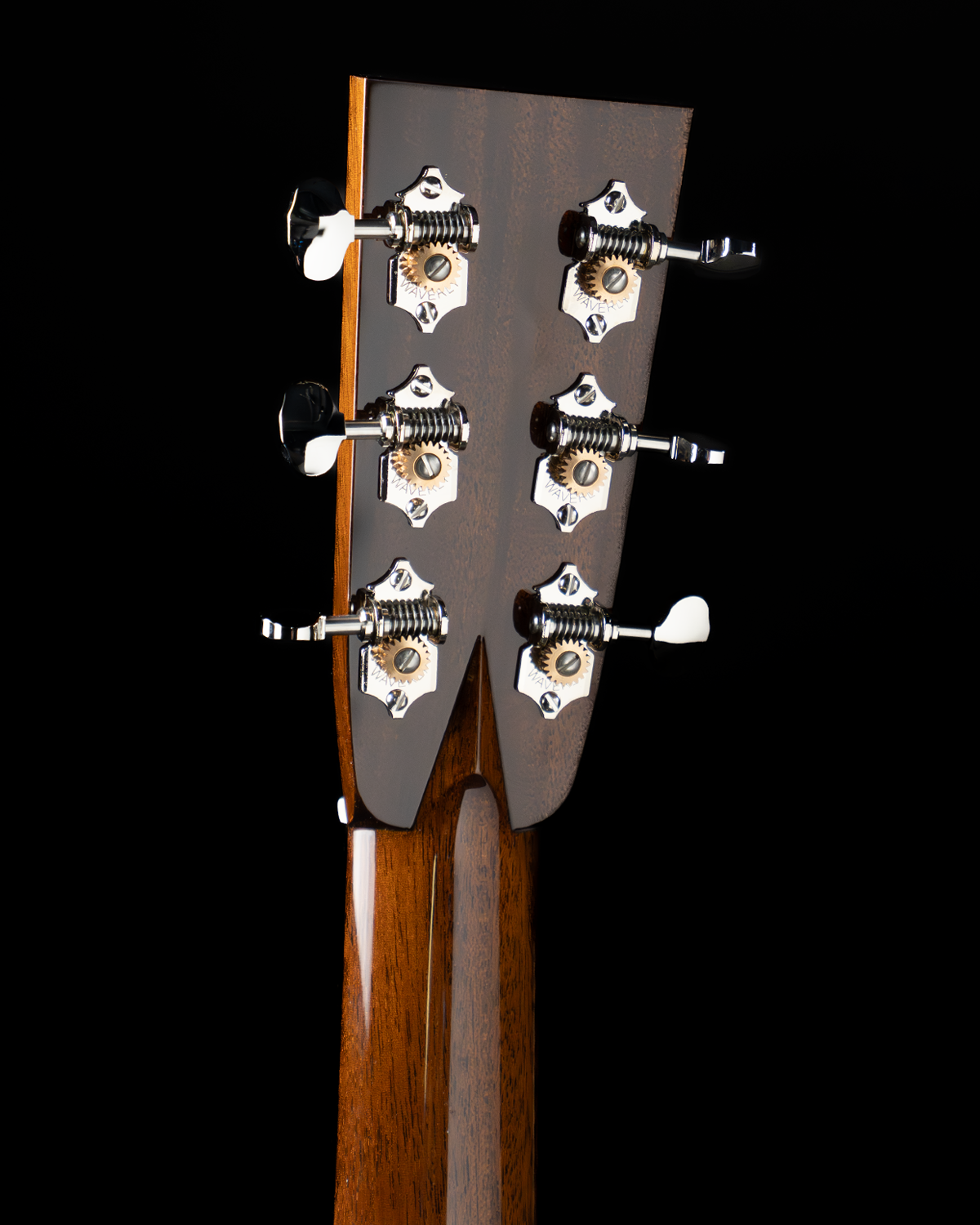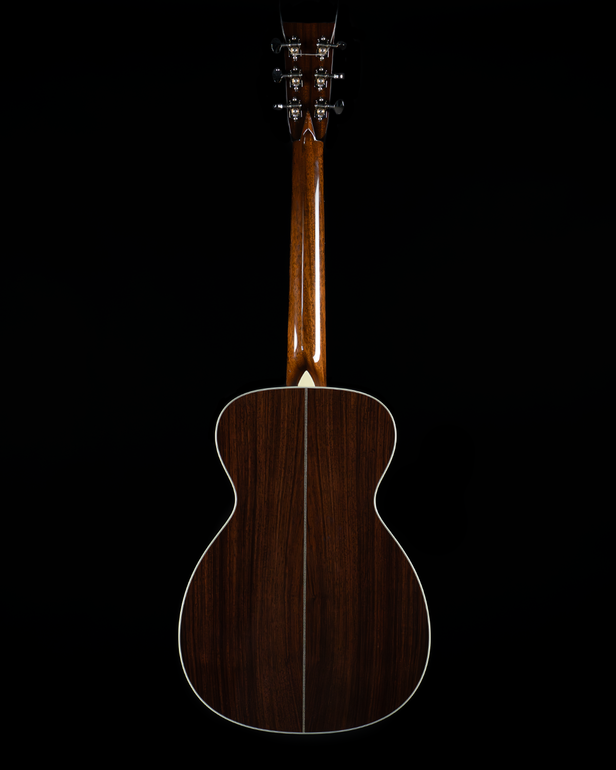 This one is a baseline Baby all the way, with Sitka spruce top, Indian rosewood back and sides, mahogany neck with Collings' original mod V profile. 1 11/16" nut, 2 3/16" string spacing at the saddle, short 24 1/8" scale length. Style 2 appointments include ivoroid body binding, herringbone top trim and zipper back strip. Nickel Waverly tuners complete the package.