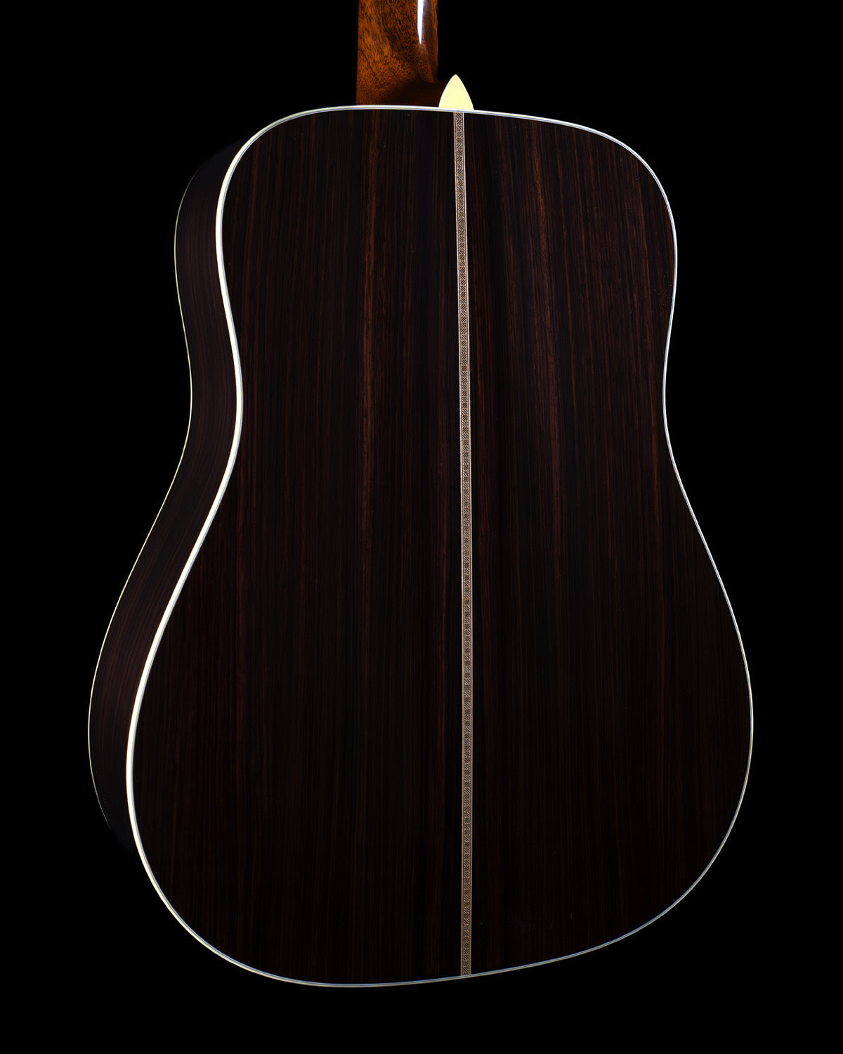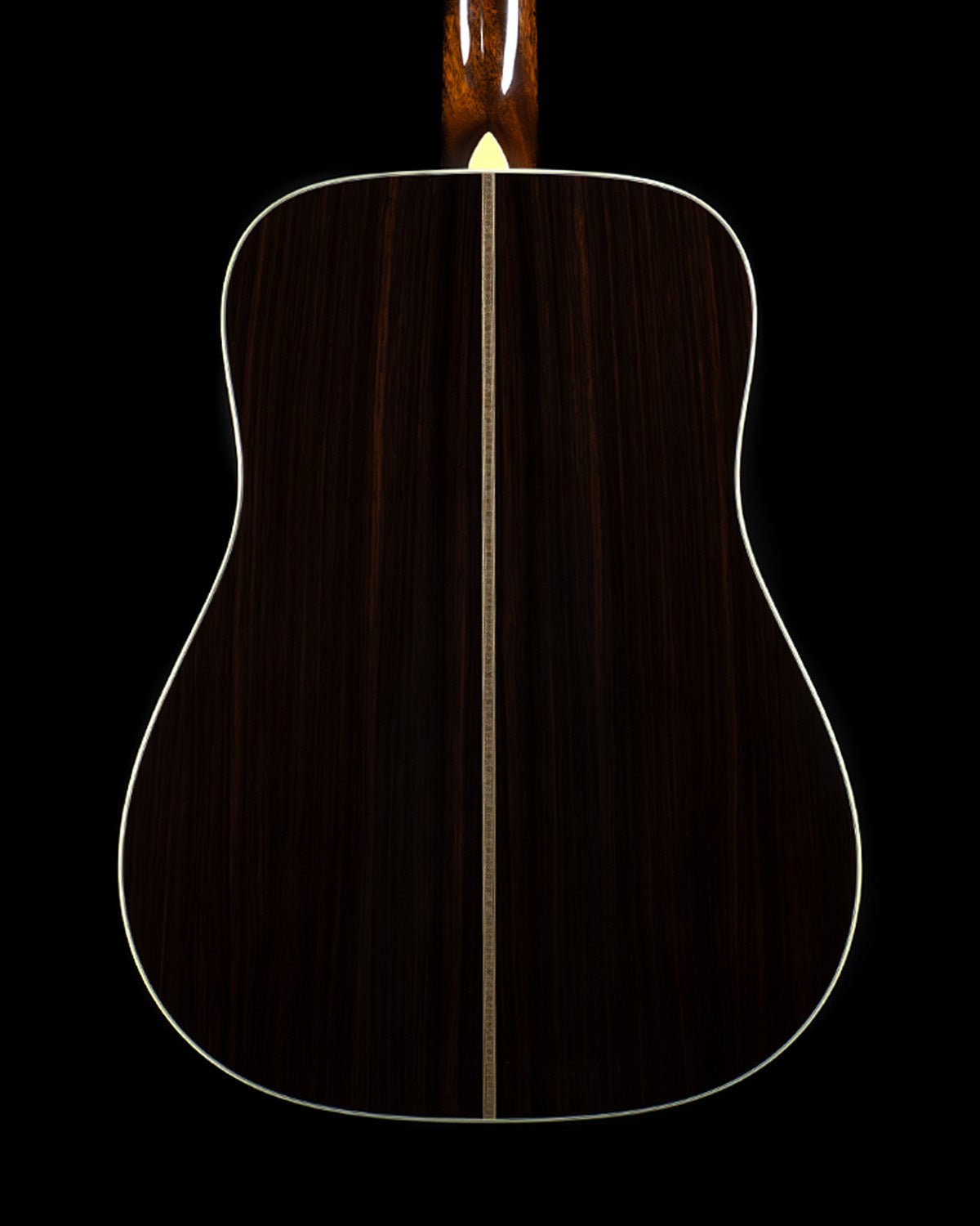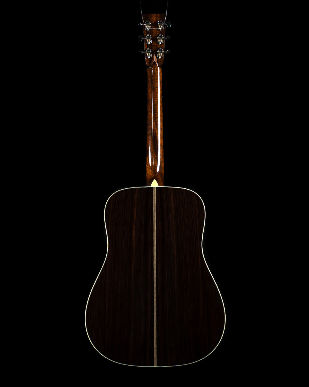 How do the Traditionals differ from the standard lineup? They have their own ever-so-slightly beefier neck profile, rolled fingerboard edges for comfort, forward-shifted scalloped Sitka braces with no tongue brace, small maple bridge plate and a pure nitro finish. 1 3/4" nut, 2 5/16" string spacing at the cut-through saddle, herringbone top trim (Traditional variant) and Waverly tuners complete the package.