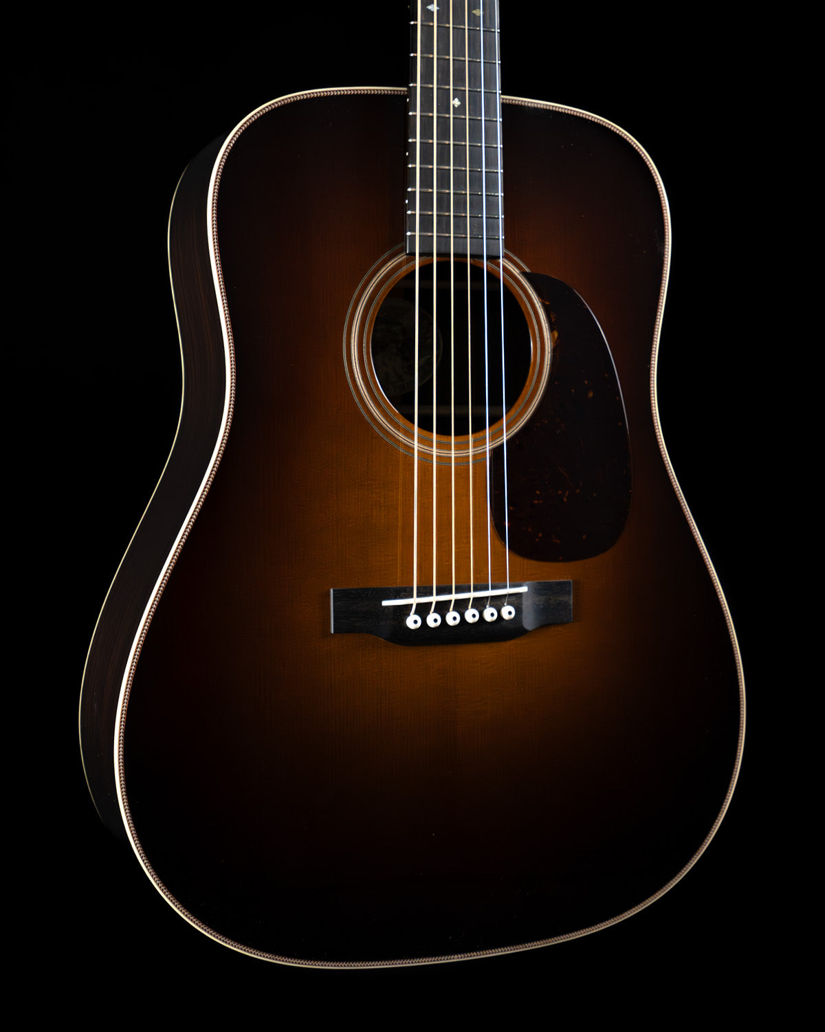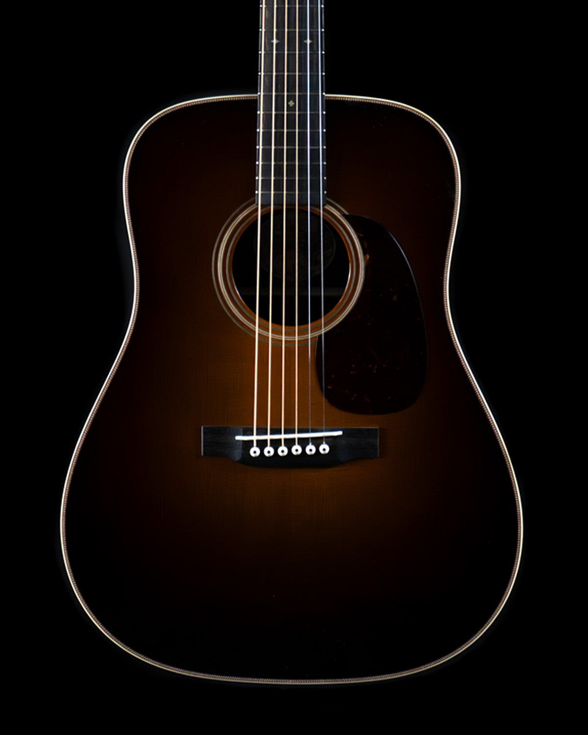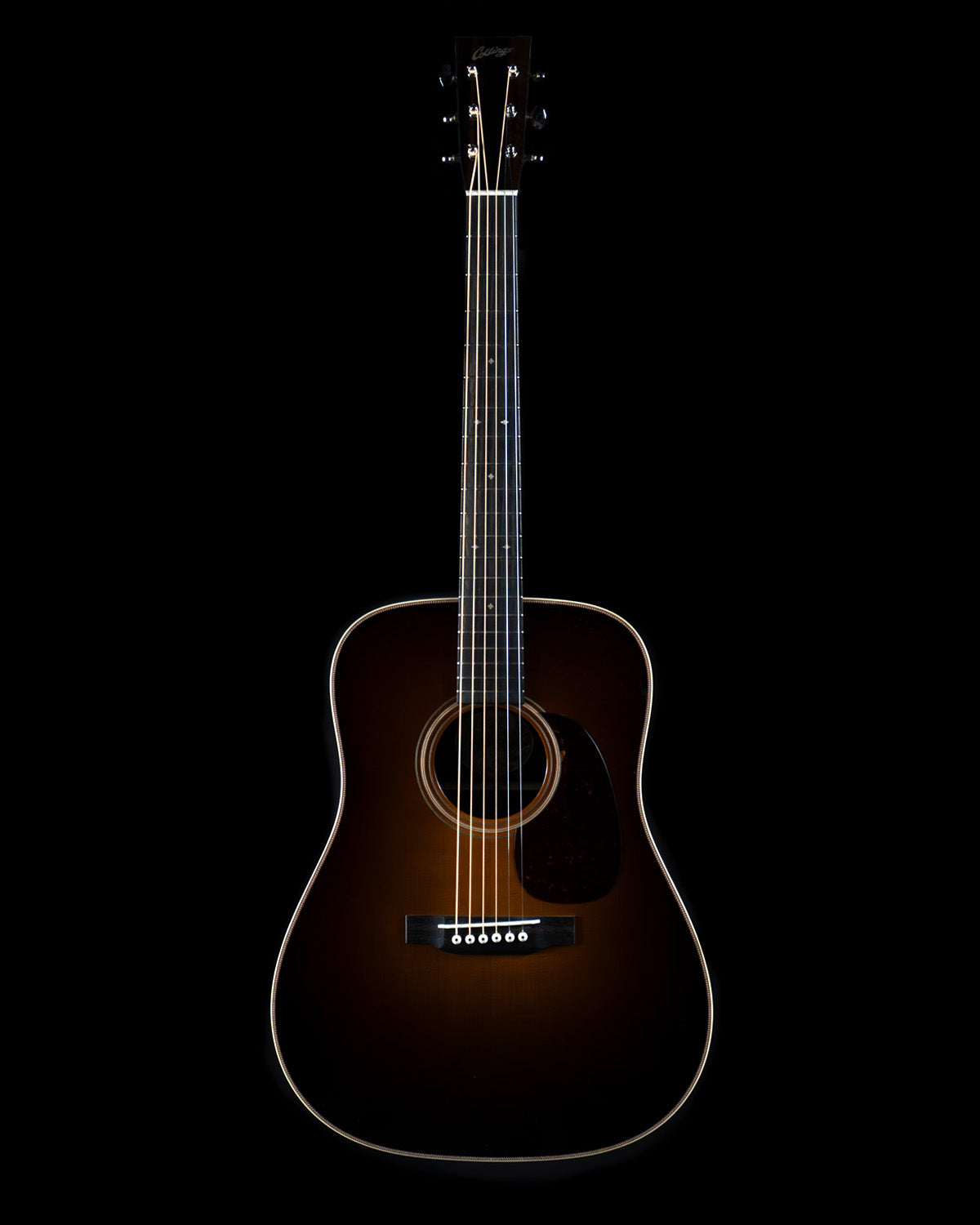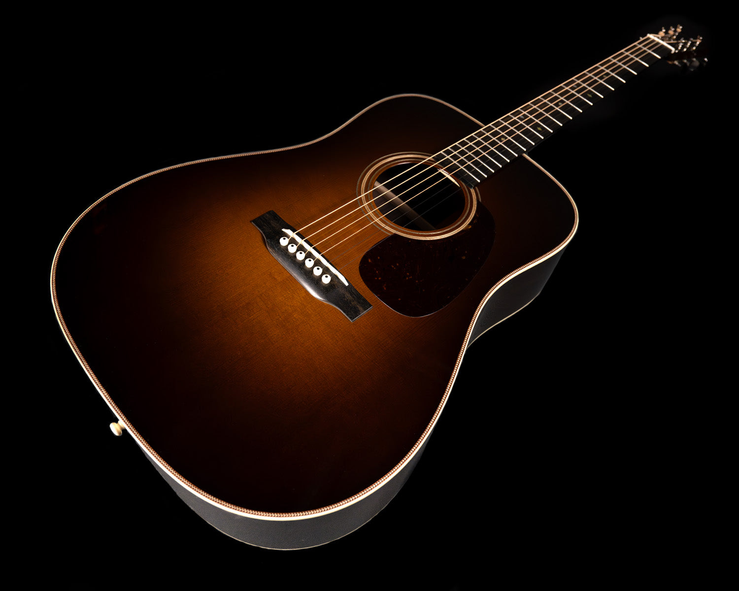 How do the Traditionals differ from the standard lineup? They have their own ever-so-slightly beefier neck profile, rolled fingerboard edges for comfort, forward-shifted scalloped Sitka braces with no tongue brace, small maple bridge plate and a pure nitro finish. 1 3/4" nut, 2 5/16" string spacing at the cut-through saddle, herringbone top trim (Traditional variant) and Waverly tuners complete the package.