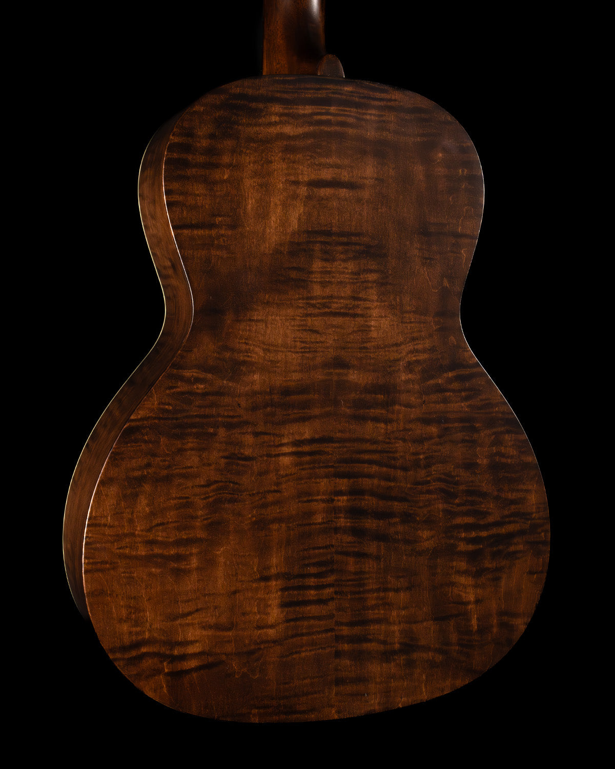 The WL-12 is short 24.9" scale with 1 3/4" nut, 2 3/8" string spacing at the saddle and a modified low oval neck profile. This particular neck measures .92" thick at the first fret, 1.068" at the ninth. All WL-12 models are X-braced and have a truss rod. Other features include rosewood fingerboard with dot inlays, ebony bridge and pins and Golden Age tuners with ebony buttons.
