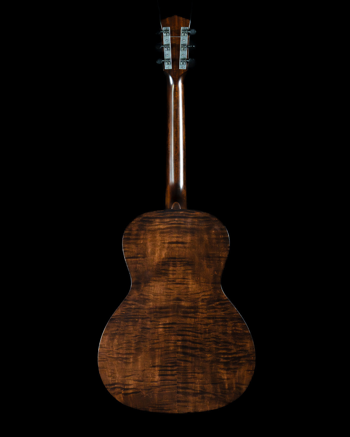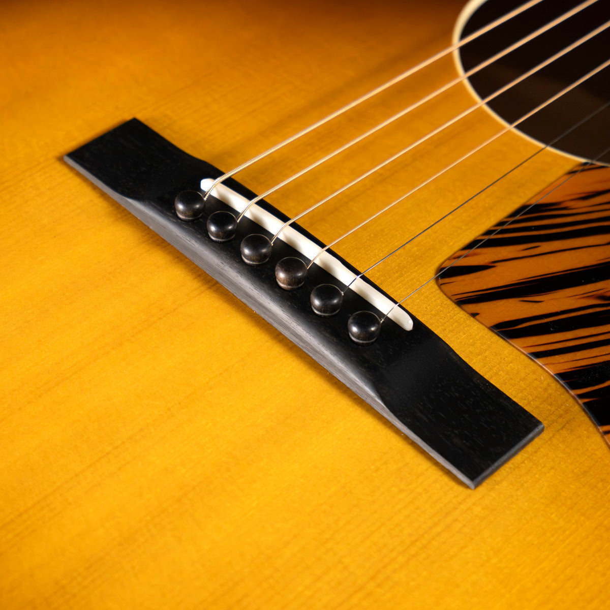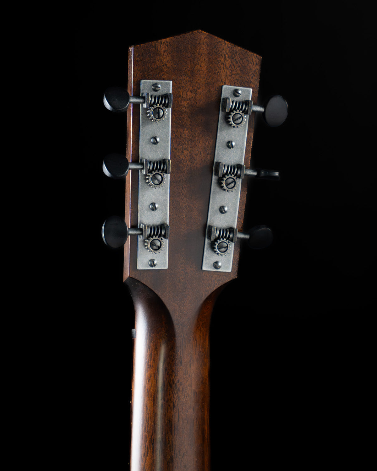 Waterloo instruments are spec'd simply with "Spruce" as the designated top wood, and the vast majority of them are Sitka. We believe that this particular instrument was fit with an Adirondack top. How do we know this? Adirondack takes the sunburst a little different, having a slightly more yellow cast (vs Sitka's more red appearance under sunburst). After noticing that, we always go inside with our flashlights and inspection mirror and, sure enough, that don't look like no Sitka to us! Collings won't confirm or deny, so you'll have to trust us on this one.