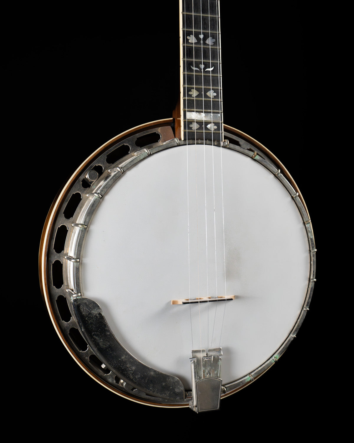This banjo is a fine example, mahogany resonator and neck with three ply hard maple rim, pre-war style tone ring, ebony fretboard, and high quality hardware. The tone is strong, clean, spanky, responsive, and LOUD! These banjos have stood the test of time and the neck is straight, the parts fit nice and tight, fret wear is minimal, and it’s just gone through a comprehensive setup at our shop. It will get spikes at 5 and 7 and the drum is tightened to a snappy 91 on the Drum Dial.