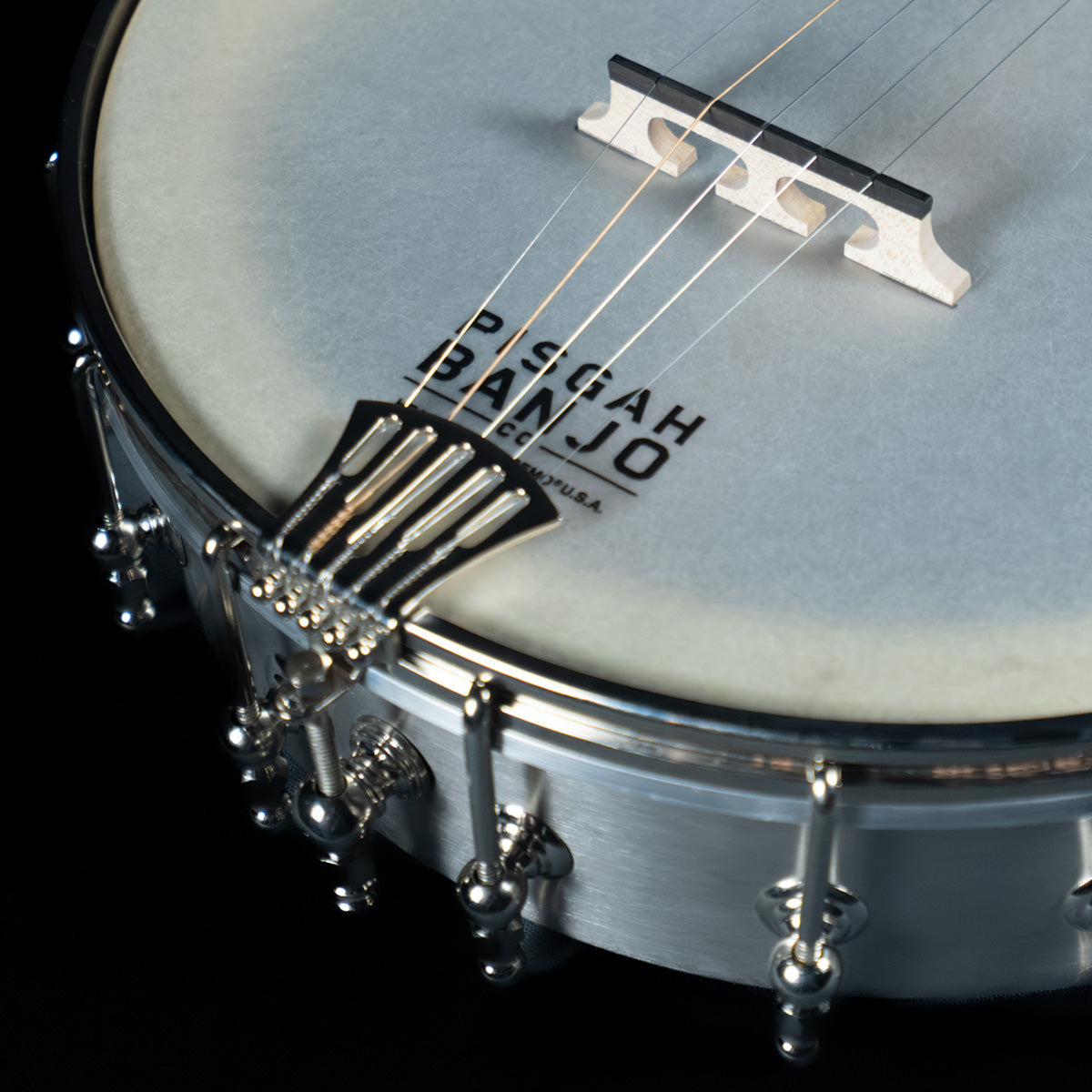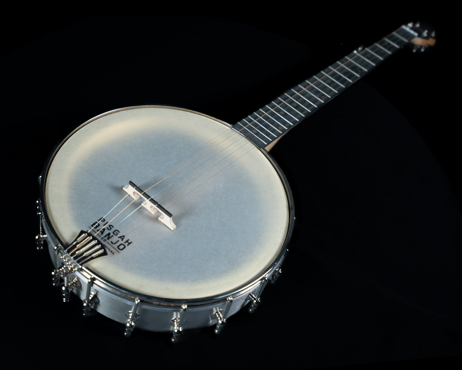 (NEW) All that glitters ain't gold... sometimes it's silver, or in this case STEEL! Another custom creation from our friends at Pisgah, this one catches the light like few other banjos do. It has an 11" spun-over steel rim and a Dobson tone ring for plunk with a little extra horsepower.