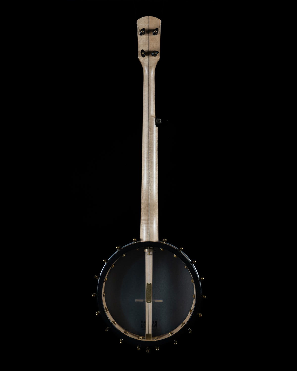 Short 25 1/2" scale length, 1 1/4" nut, persimmon fingerboard, vintage heel. Hardware is aged brass, spiked at fret 7. Price includes padded gig bag.