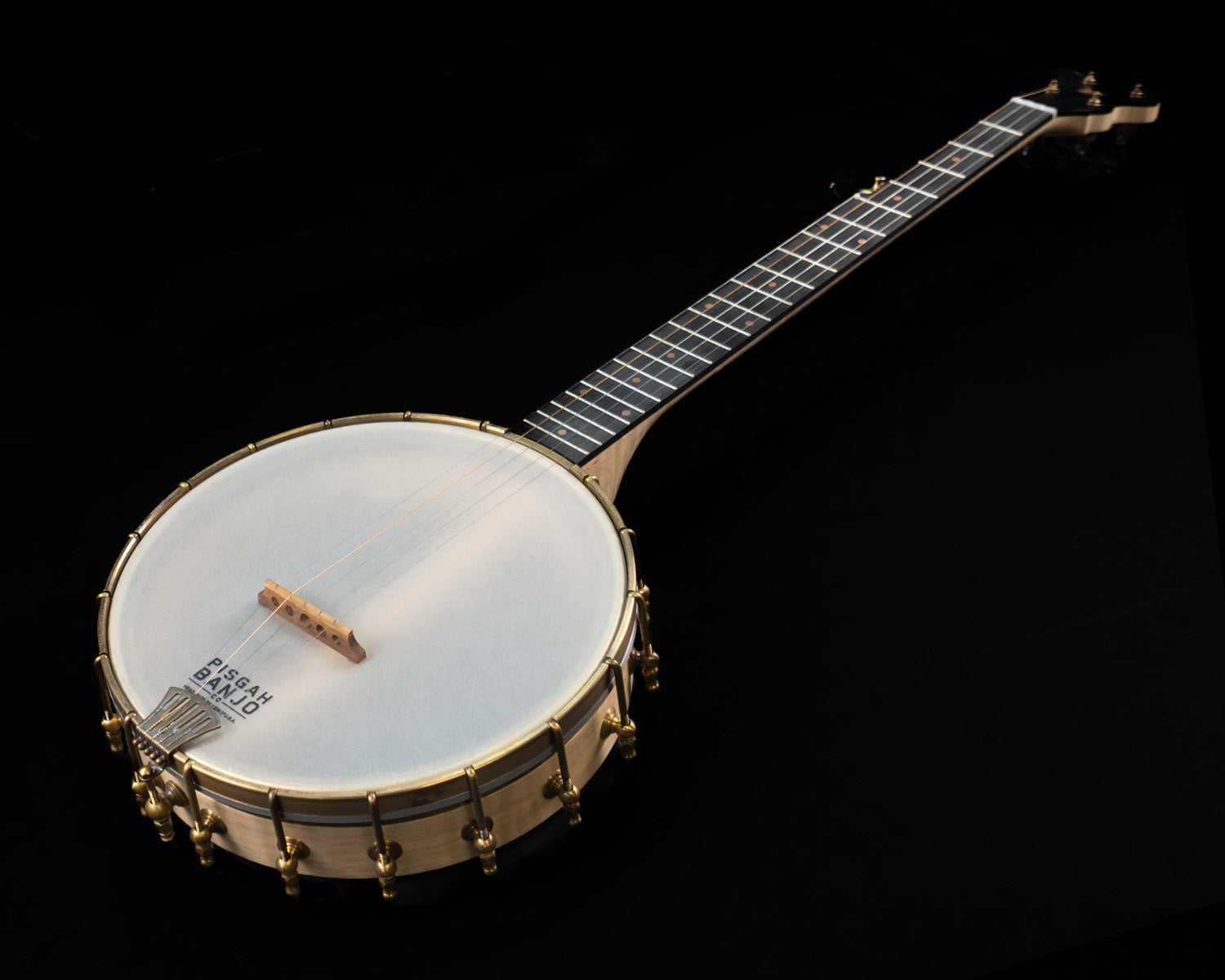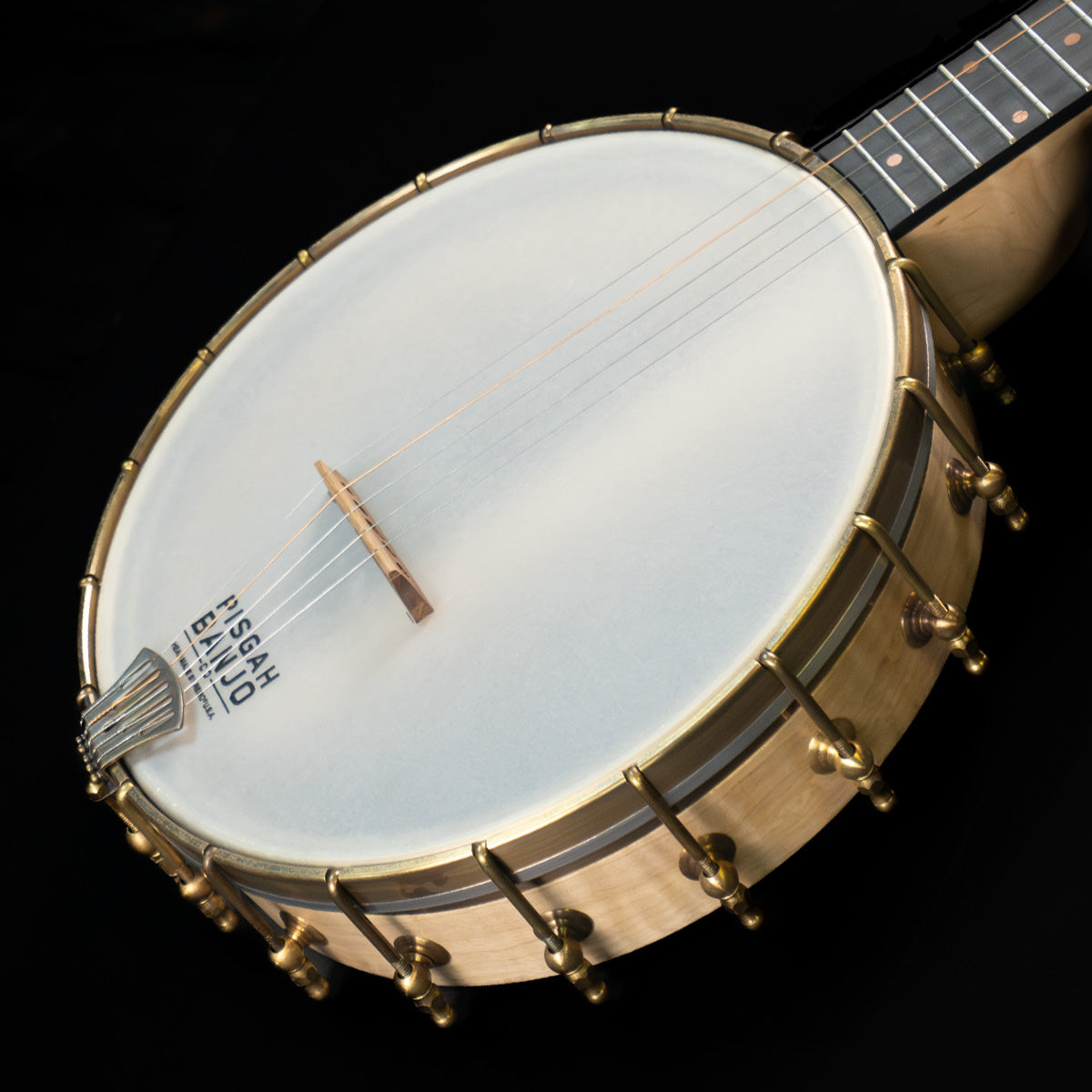 (NEW) On this custom Tubaphone you'll be able to play all them notes, as it's fully fretted (vs scooped) and you'll certainly be heard doing so, thanks to the heavy Tubaphone tone ring. This one has an 11" maple rim, maple neck with boat heel and aged brass hardware.