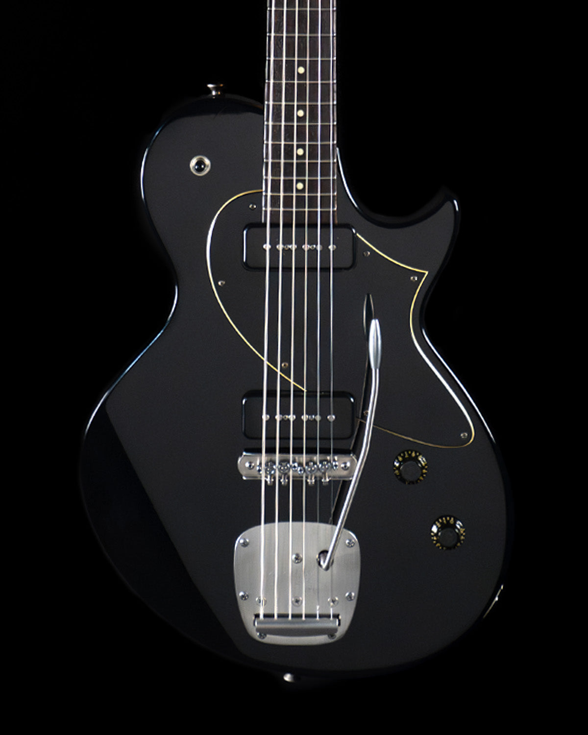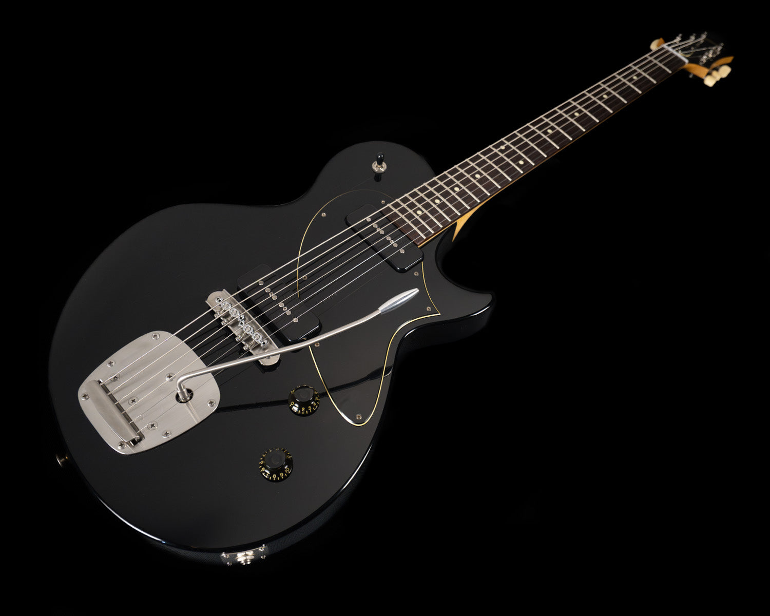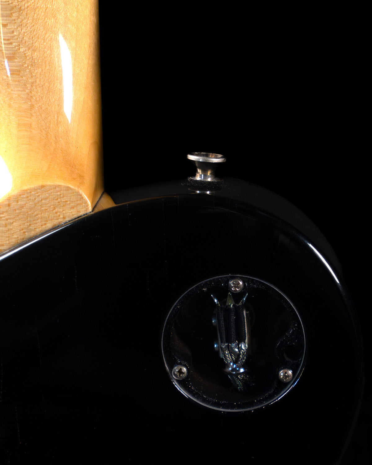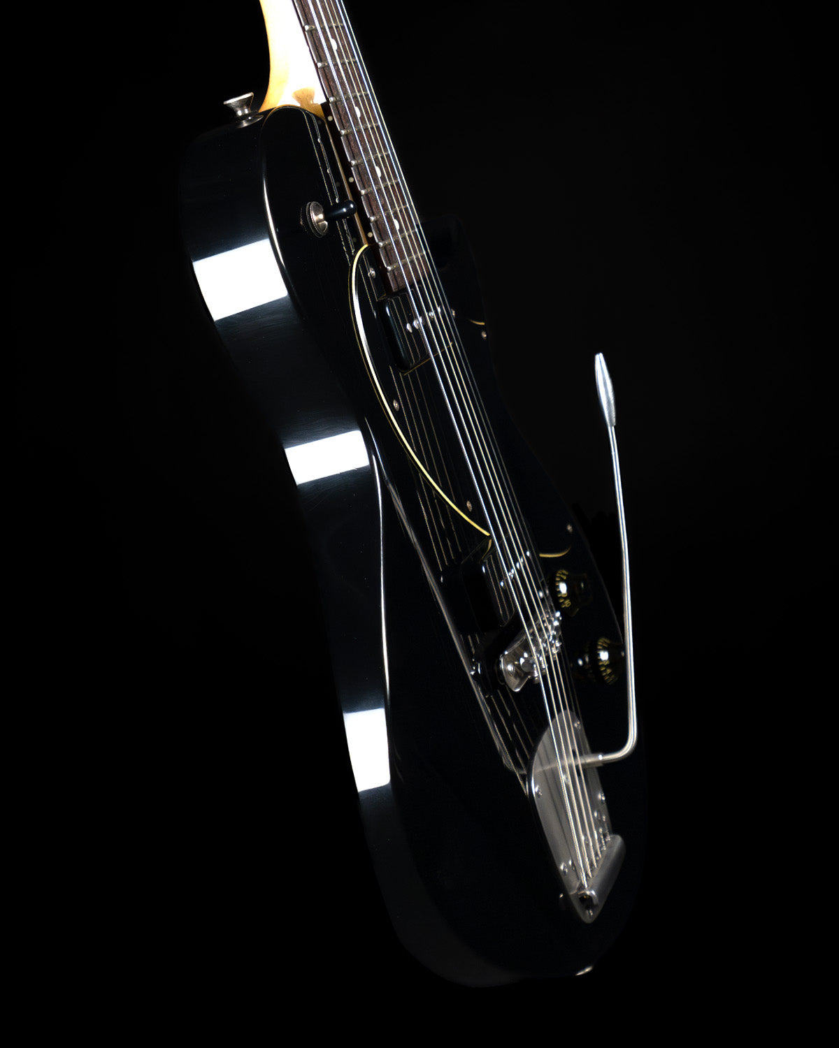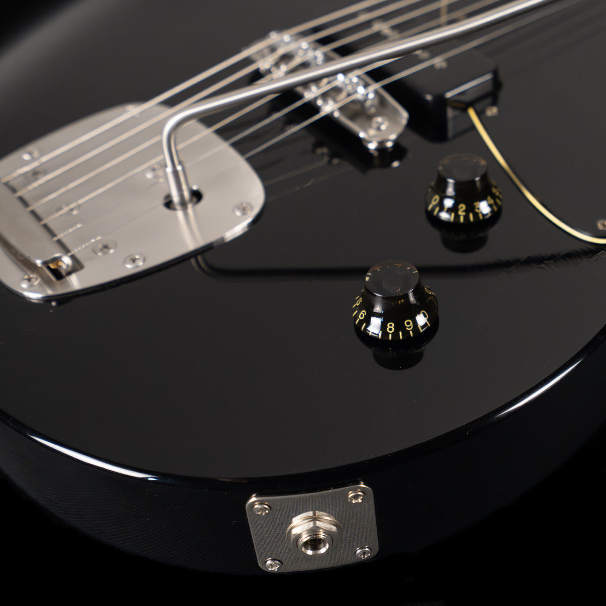 The finish is Aged Jet Black, which introduces lacquer checking on the body and some aging on the hardware, but normal finish on the neck. Includes original hard case.