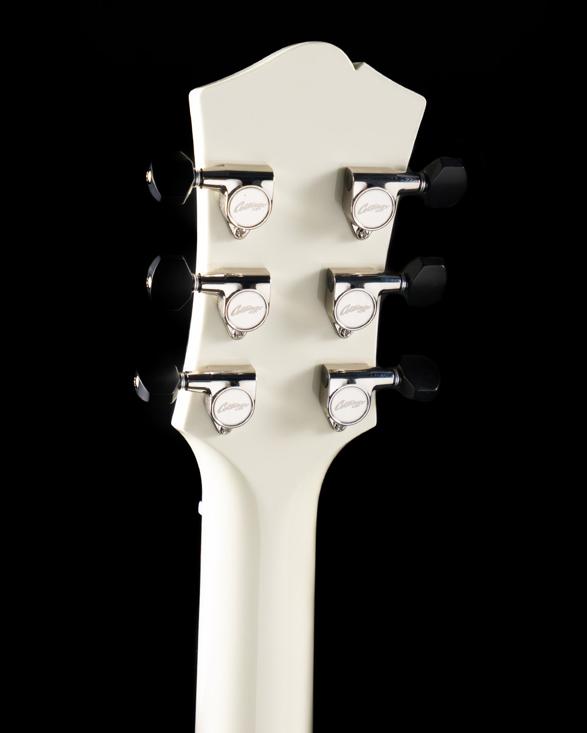 The construction is hollow and maple laminate is used for the top, back and sides. This one was displayed at NAMM 2026 and has a high gloss olympic white finish. It has tortoise body binding, a house-made pick guard and closed-gear tuners with ebony knobs. The nut is 1 11/16" and this is Collings' original C shaped neck. Full specs and neck diagram can be found here: https://collingsguitars.com/electrics/620-sm-lc/