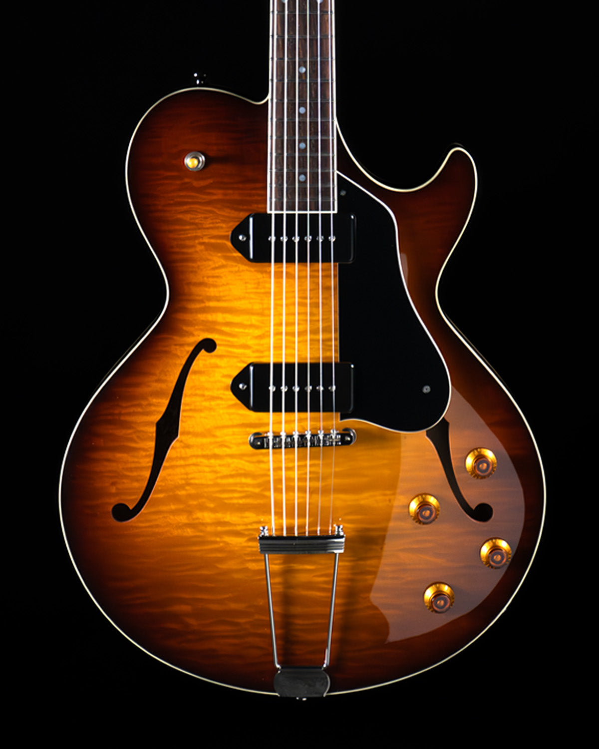 (NEW) Sweet and low down, indeed! The SoCo 16 Baritone is Collings' big, bad semi-hollow that plunges the sonic depths, being naturally tuned to either B or C standard. The maple body brings a wonderful balance to the deep tones coming from the custom Lollar dogear P90 pickups, there isn't any muddiness or lack in definition. You'll hear every note in every thick chord on this one.