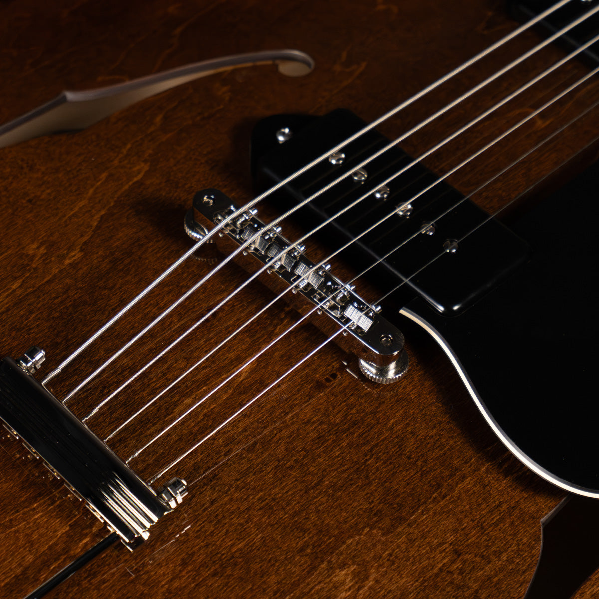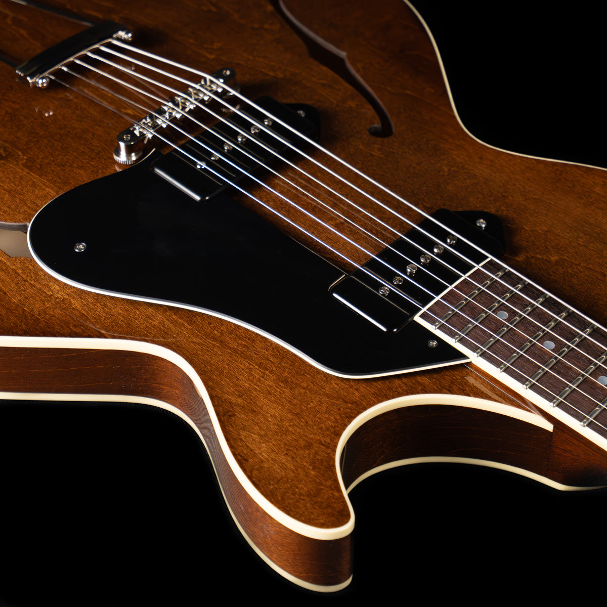 (NEW) Sweet and low down, indeed! The SoCo 16 Baritone is Collings' big, bad semi-hollow that plunges the sonic depths, being naturally tuned to either B or C standard. The maple body brings a wonderful balance to the deep tones coming from the custom Lollar dogear P90 pickups, there isn't any muddiness or lack in definition. You'll hear every note in every thick chord on this one.