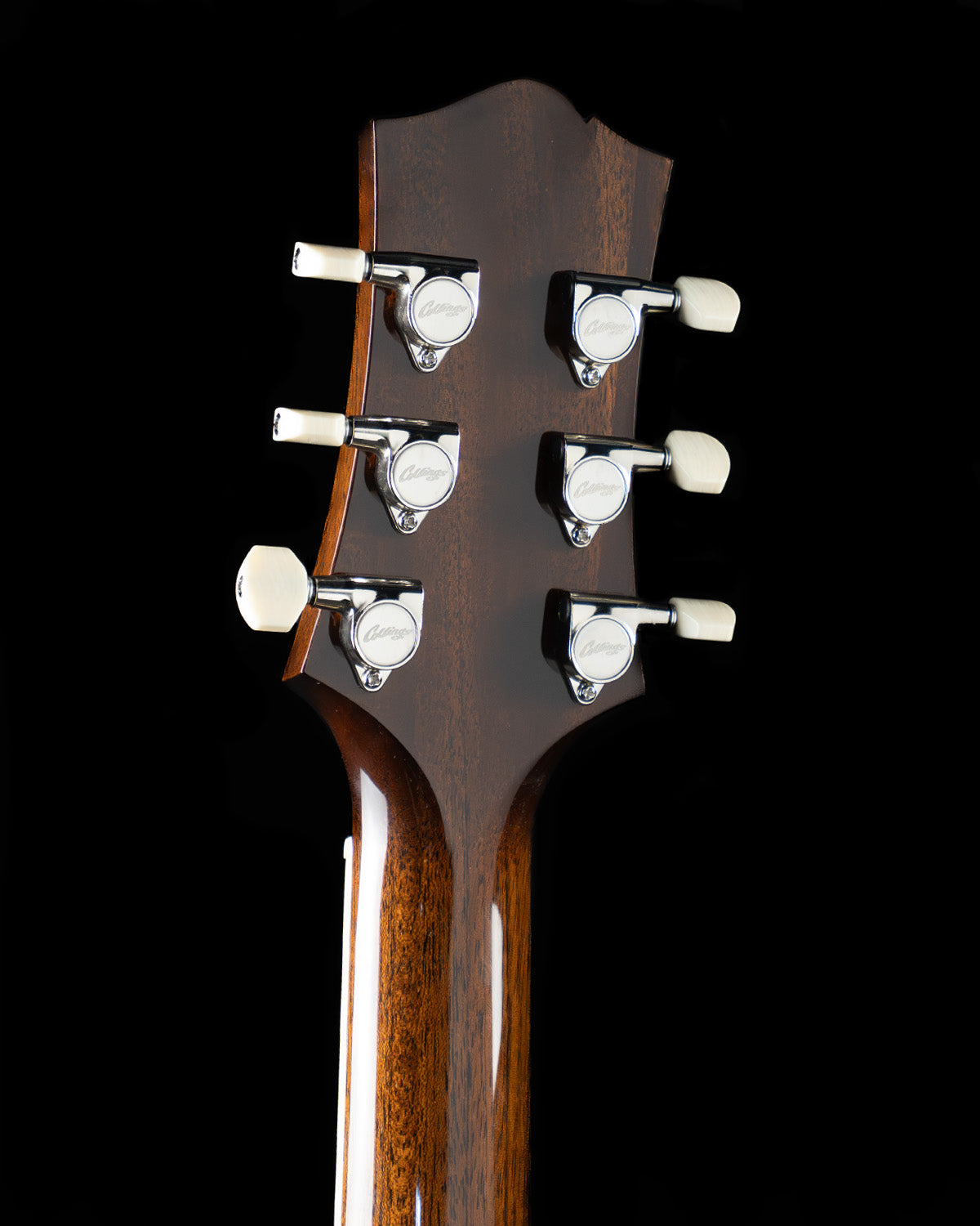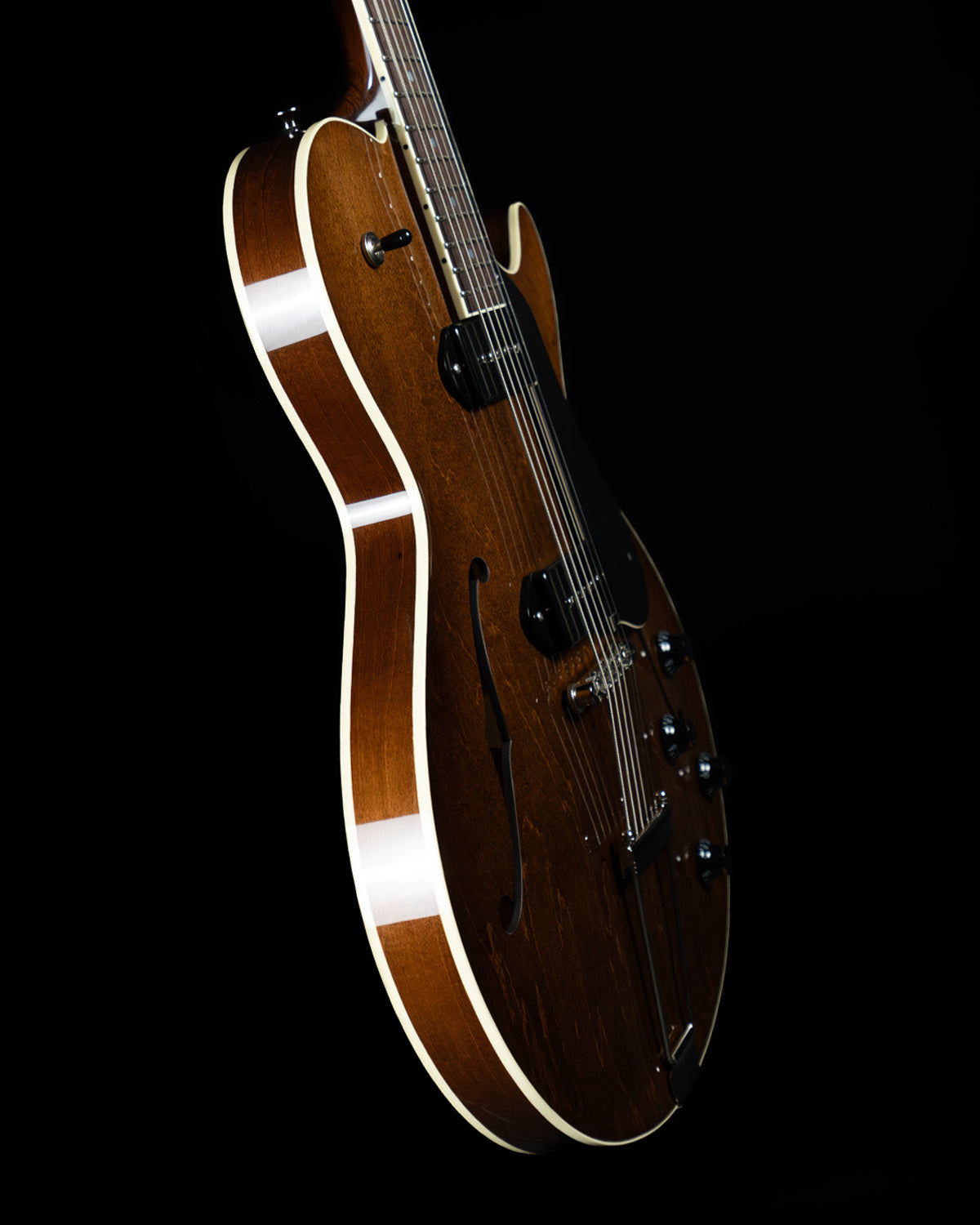 Appointments include ivoroid bound body and fingerboard, amber top hat knobs and ivoroid tuner buttons. The instrument itself weighs 7 lbs and includes a hard case.