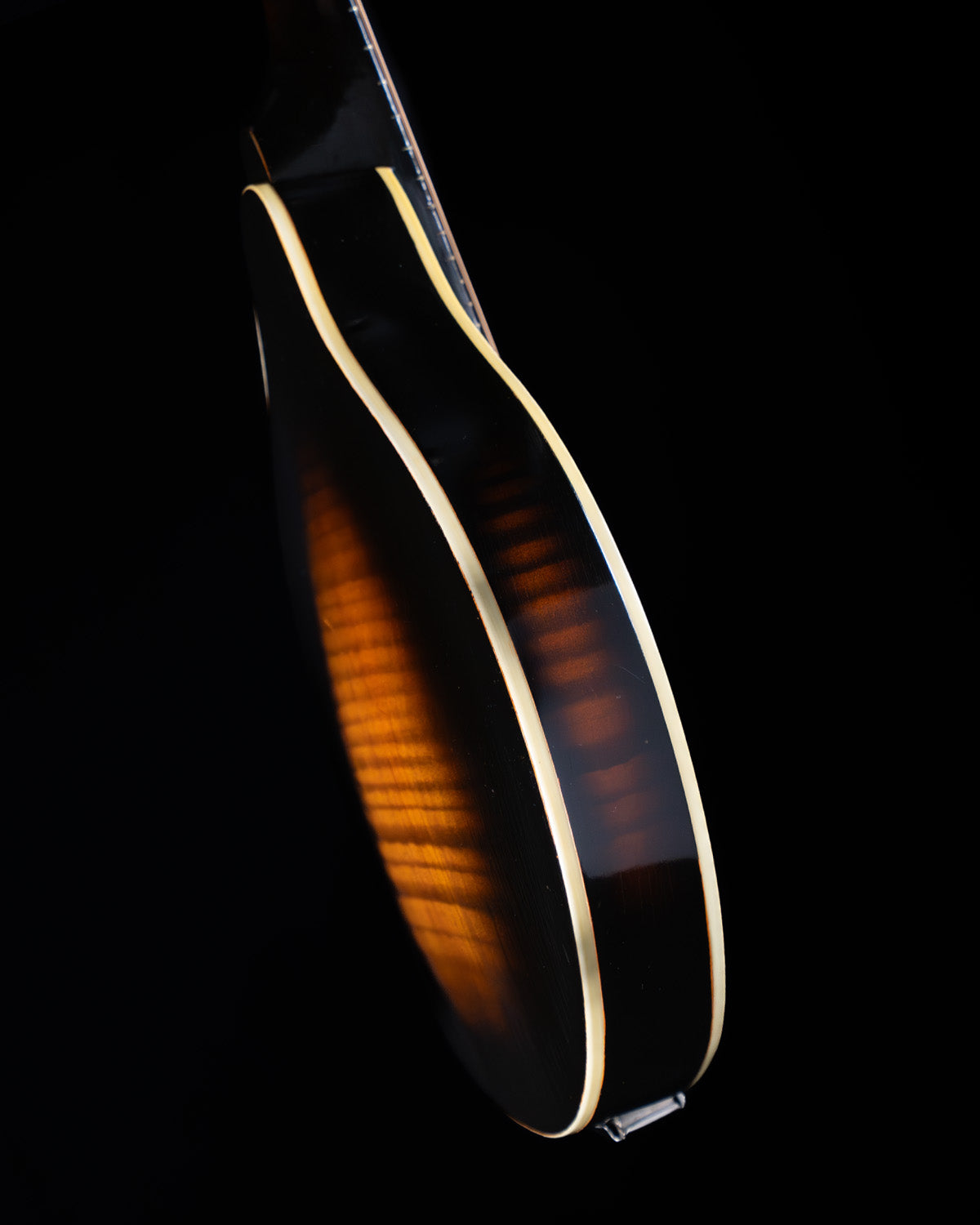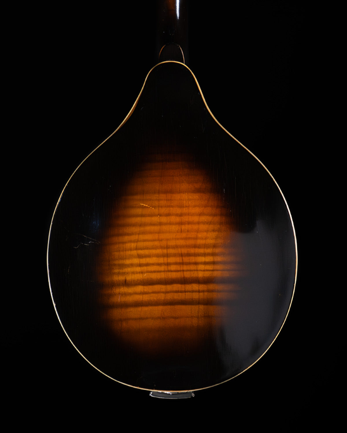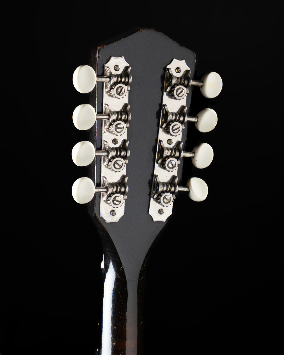 (USED) Here is a cool, funky little A model branded Silvertone, we believe it to be from the 1960s. It has a solid spruce top and laminated pressed maple back/sides. It has a traditional sunburst with a lacquer finish that has some checking and some scratches and pick marks, but still retains a vivid color. The nut width measures just a whisker above 1 1/8" wide and the frets and fingerboard are in very good shape. Tuners appear to be the originals and are functioning well.