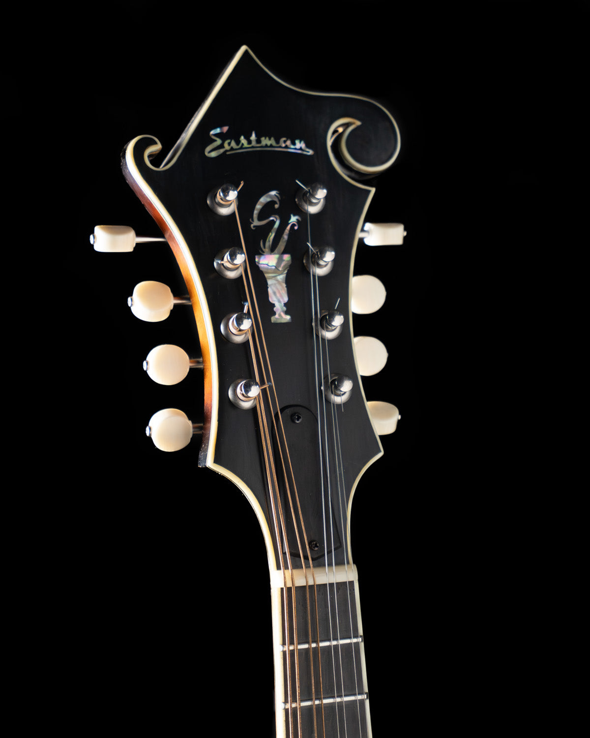 (NEW) One of Eastman's most compelling mandolin offerings is the 815 series, featuring solid Adirondack spruce tops, figured maple back and sides and in the case of this one a varnish finish with some light relic work. These mandolins sounds and play GREAT, outperforming most things in their price range.