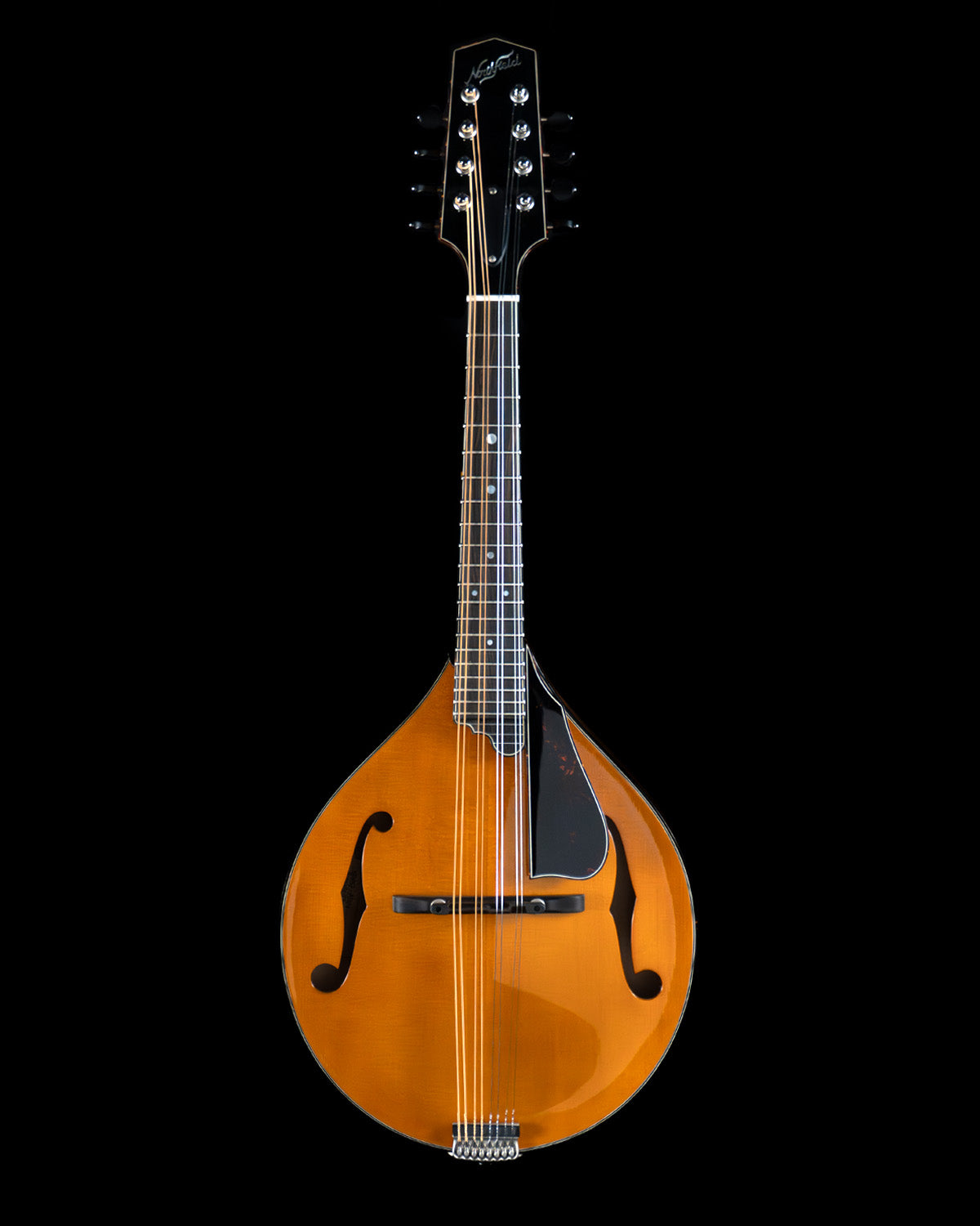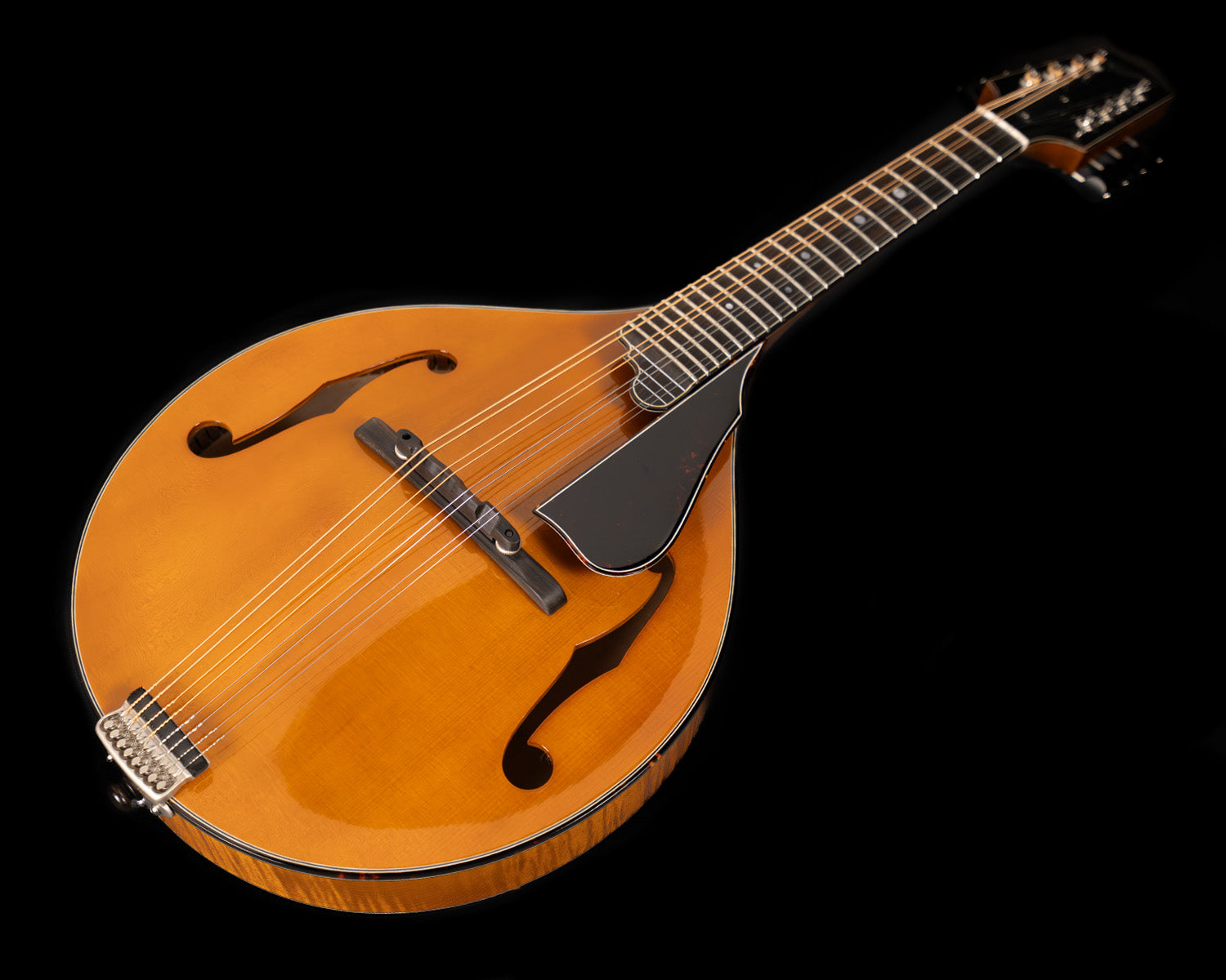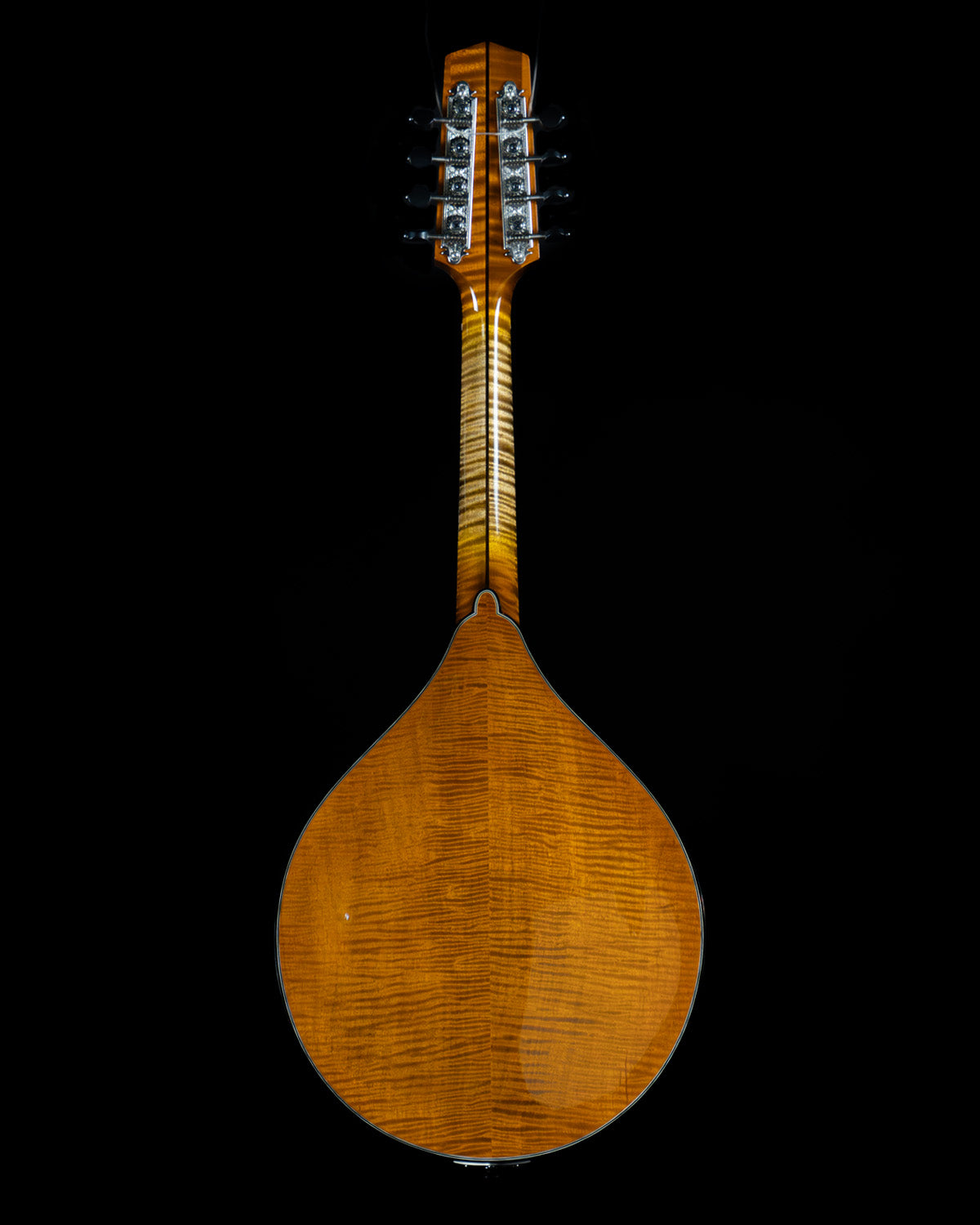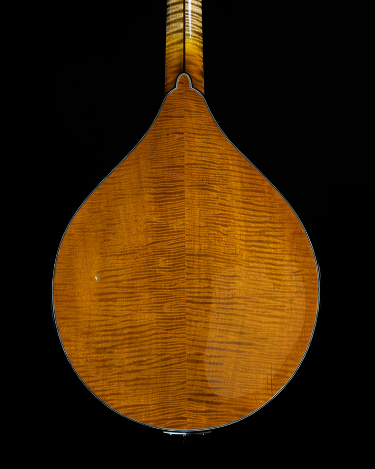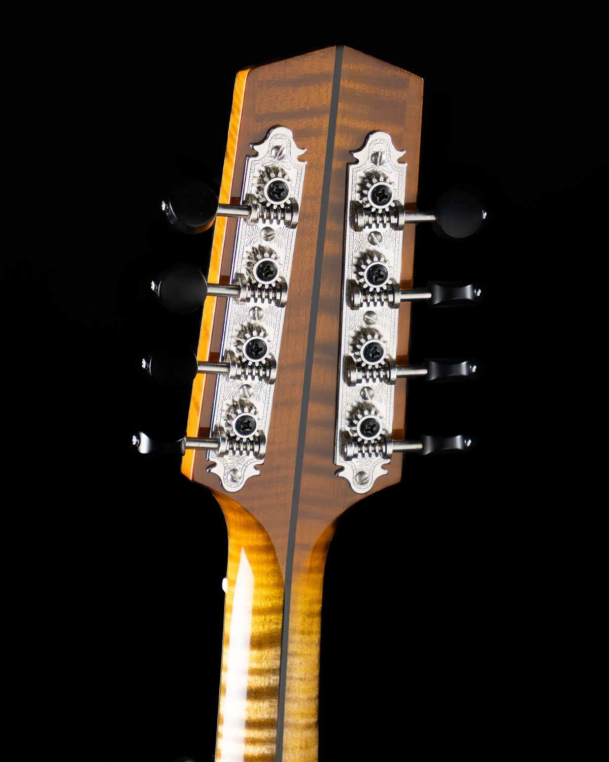 (NEW) We all know not to stare directly at the sun, but there's no harm in gazing into the shiny goodness on display with this Northfield A5 Special! The Italian Alpine spruce on this mandolin has some of the tightest, most uniform grain we've seen in some time. The figured maple really pops under the gloss amber finish, and the subtle burst effect on the neck almost looks like a speed neck (it's full gloss as well). The bright white purfling lines around the tortoise binding show that Northfield has a serious eye for fine details, and the bound tortoise pick guard was a great visual choice here.