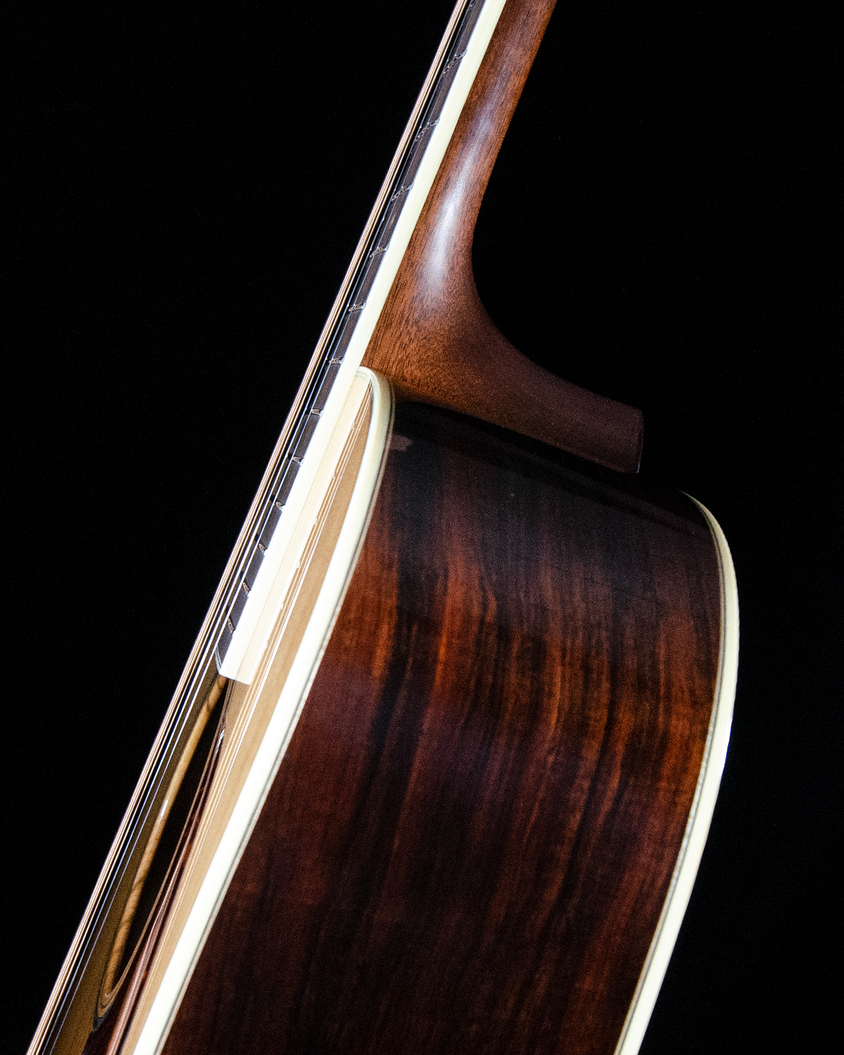 Additional features, unique to the Limited Edition, enhance the vintage look and broken-in sound of the guitar. These include Aged Tone Adirondack braces, double-scalloped Banjo Killer-style X bracing, a new, ultra-thin version of his standard Aged Tone finish, and a vintage-style” long” saddle.