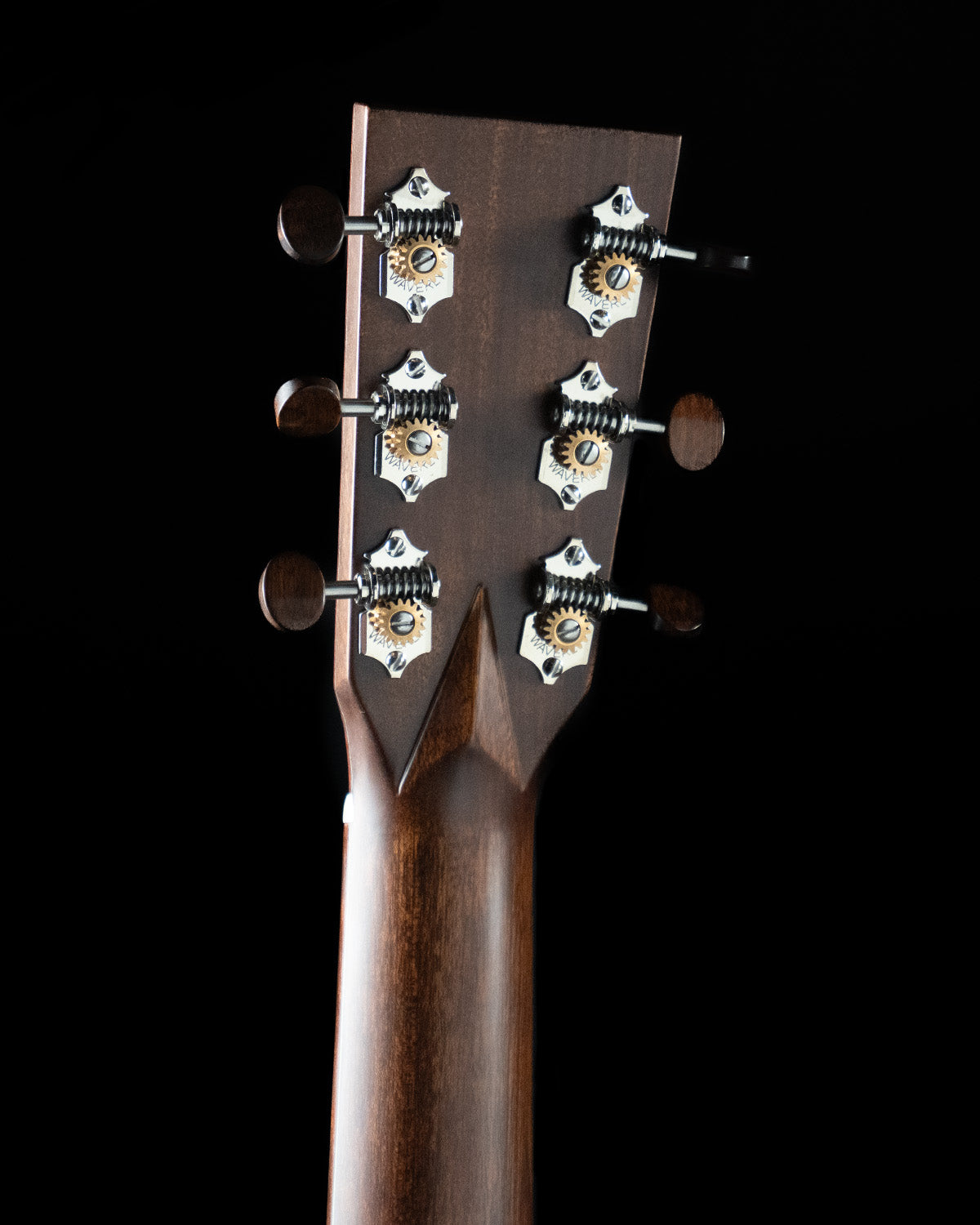 Long 25.4" scale, 1 3/4" nut, 2 1/4" string spacing at the saddle. Comfortable mod V neck with satin finish. Ebony fingerboard, bridge and pins. Nickel Waverly tuners with snakewood buttons. Includes tweed style hard case.